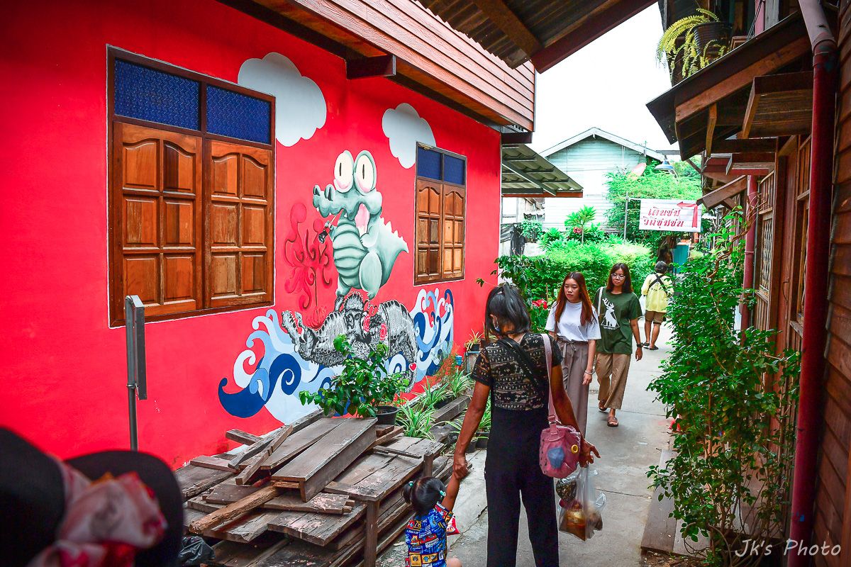 graffiti หรือศิลปกรรมบนผนังมีให้เห็นหลายจุดในชุมชนนี้อะ..
