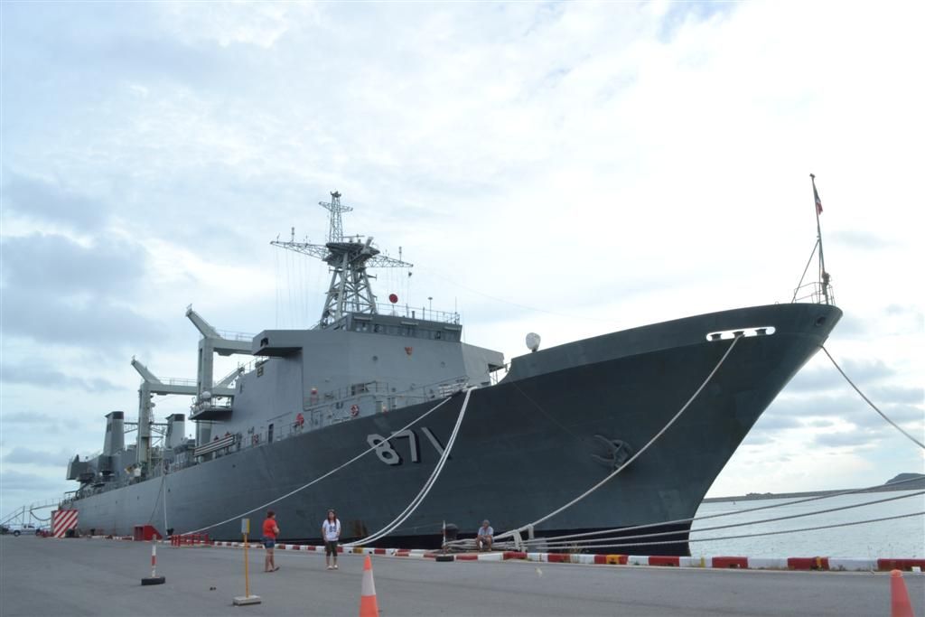 สวัสดีมายังทั้งสามท่านคร๊าบ ท้ายเรือจักรีที่สัตหีบน่ะครับ