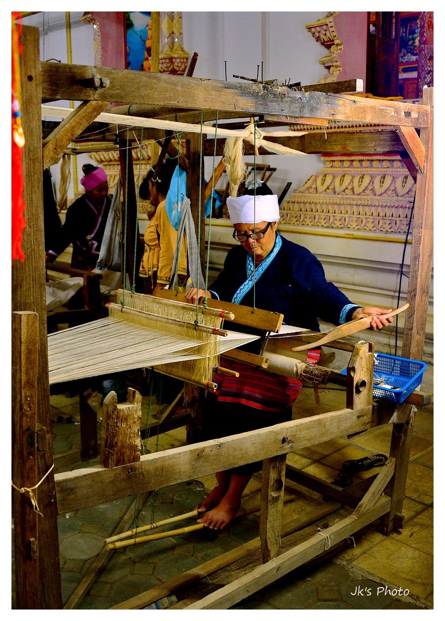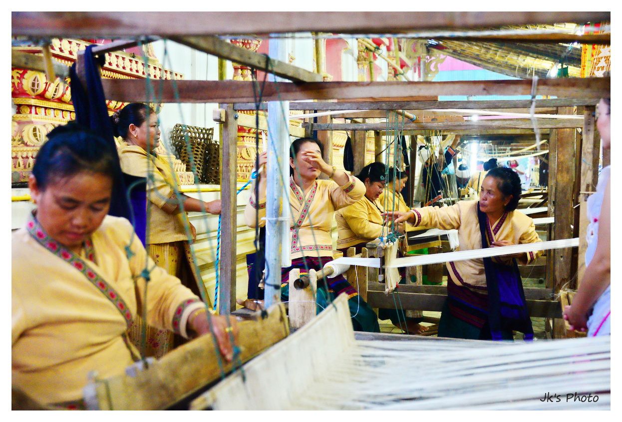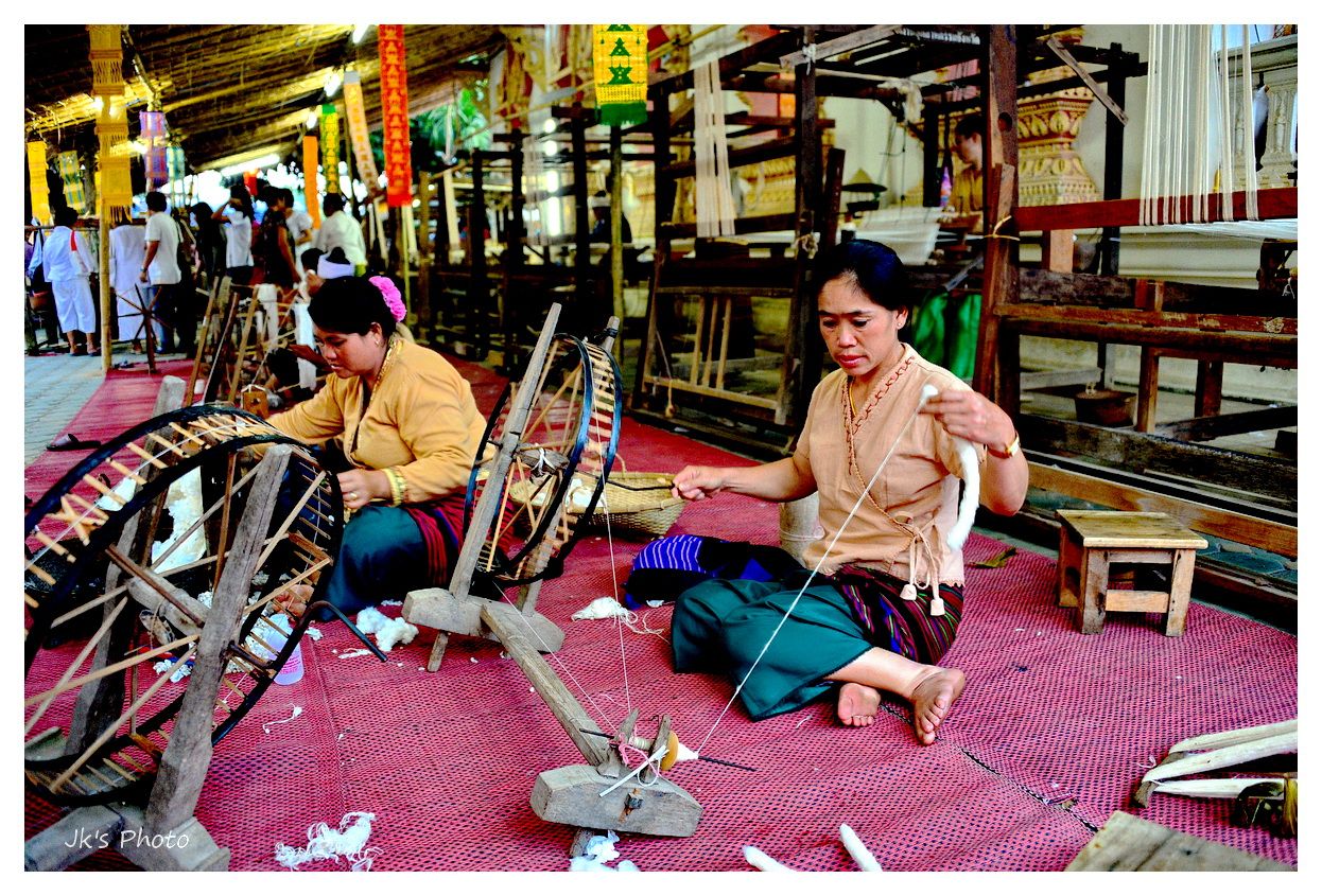 ตั้งแต่ปั่นฝ้าย/ทำเป็นเส้นด้าย/ทอผ้า/ย้อมผ้า ในวัดกันเลยอะ..ต้องเสร็จภายในวันเดียวด้วยซิ..