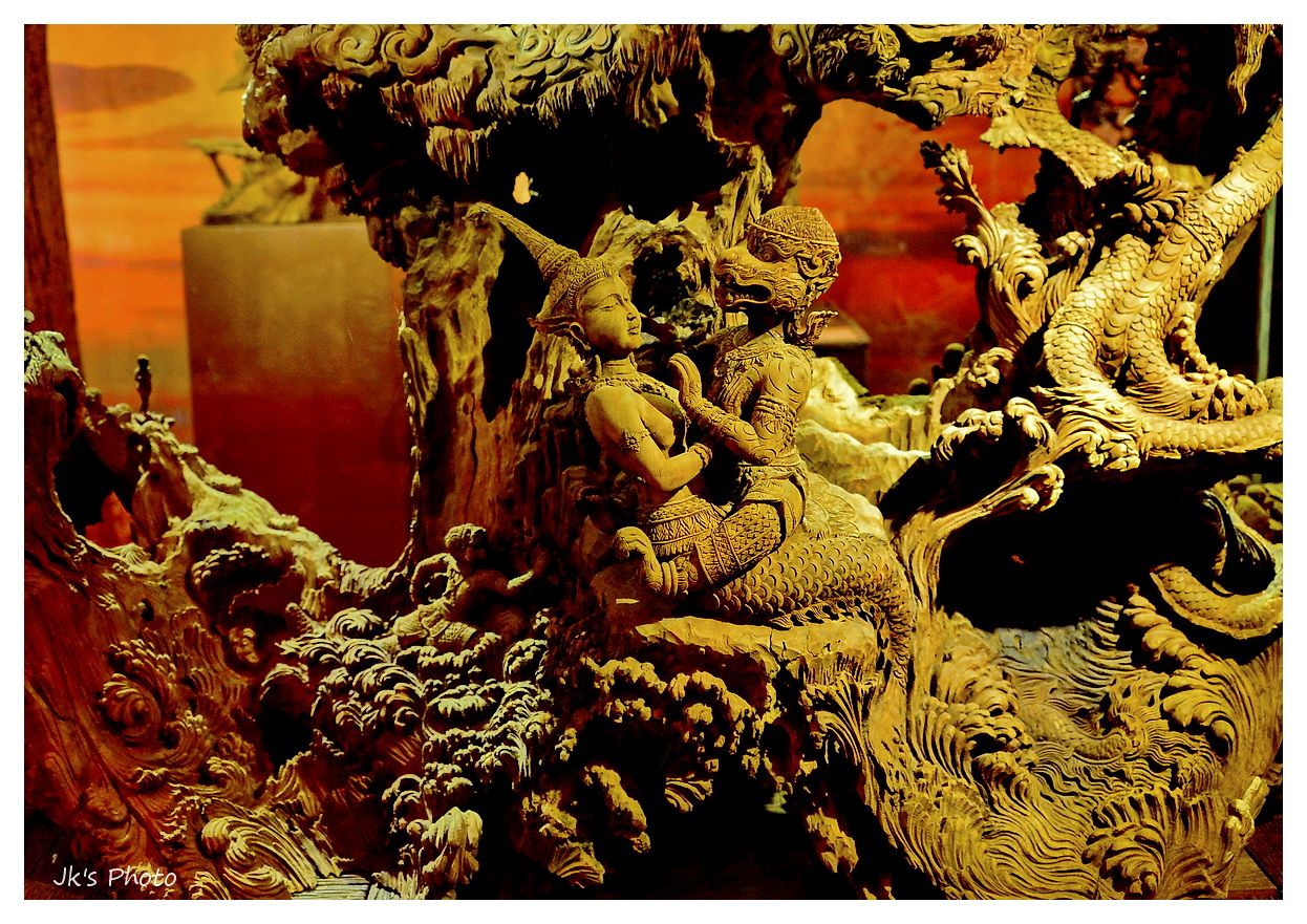 วูดแลนด์เมืองไม้...ในส่วนจัดแสดงนี้อยู่ในห้องแอร์ ชิ้นงานแกะสลัก(ใหญ่และสูงกว่า 190 cm)เป็นศิลปะเขมร ให้ความรู้สึกเหมือนอยู่ในหนัง tomb raiders เลยอะ..