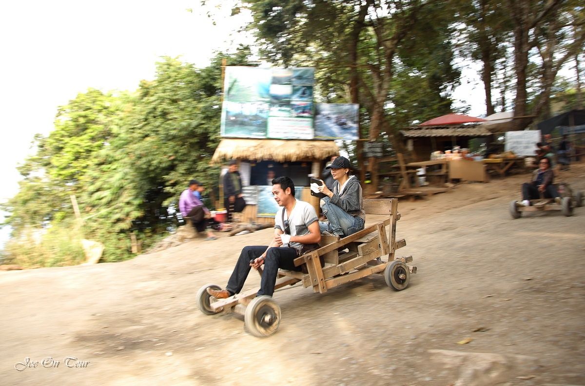สำหรับท่านที่ชอบความตื่นเต้นสนุกสนาน ก็ลองเล่นรถไม้วิ่งลงมาจากบนเขาดูนะครับ