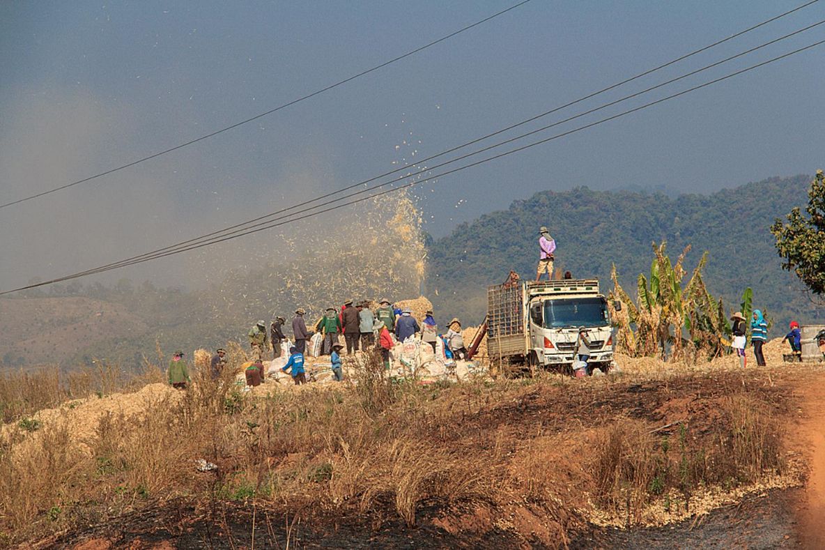 ระหว่างเป็นชาวบ้านเขาทำไรหว่าคงจะเป็นการสีข้าวโพด (เดาเอาอิอิ)