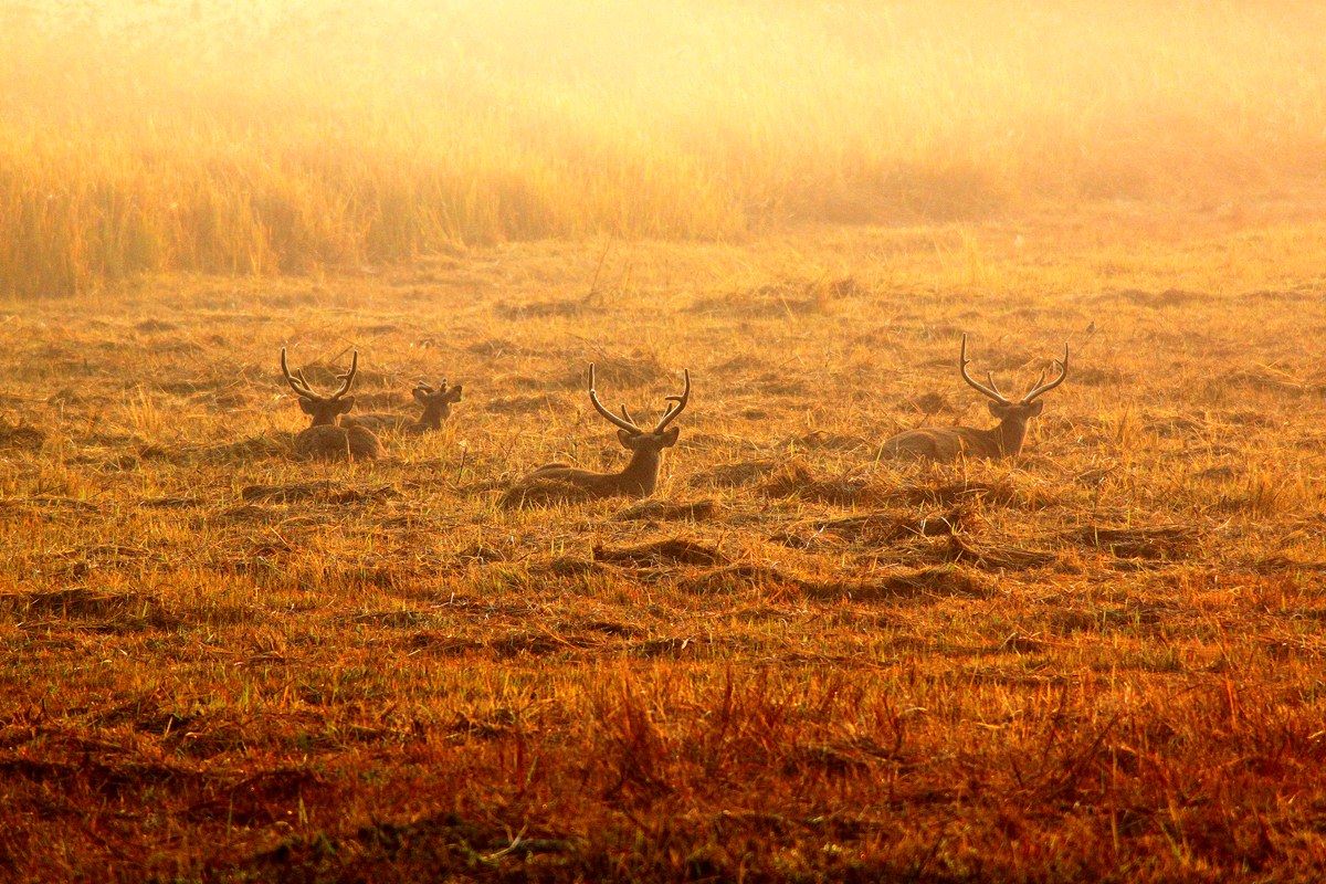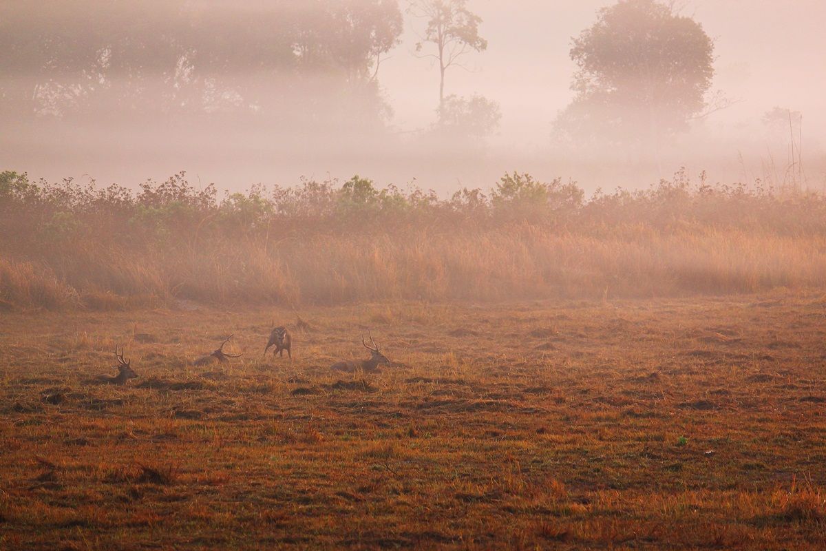 หันกลับมาส่องด้านนี้ อ่ะน้องกวางนอนอยู่ในสายหมอกนี่นา