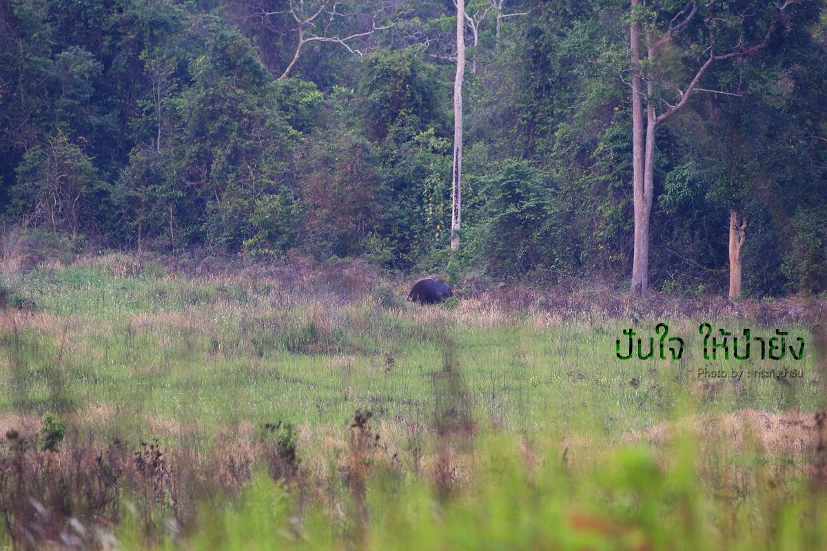 เลยระแวง .. สรุปคือ มี เจ้าตัวนี้ ตัวเดียว ที่ออกมาให้ พวกเราได้ เห็น ไกลๆ อยู่ ชายป่าโน้น..ส่วนฝูง..คงอยู่ในป่าด้านใน