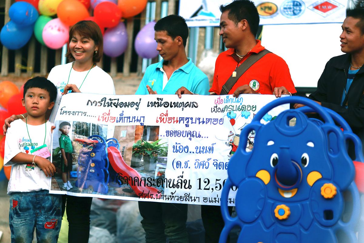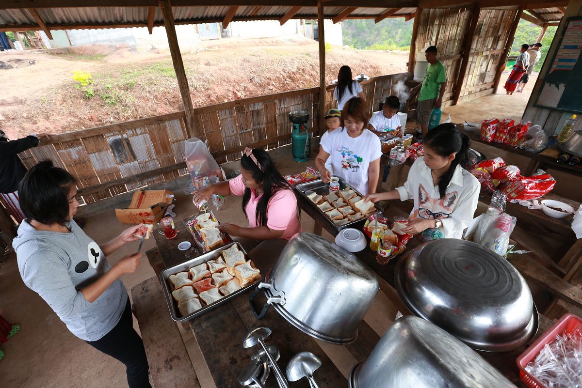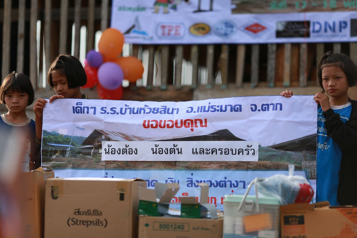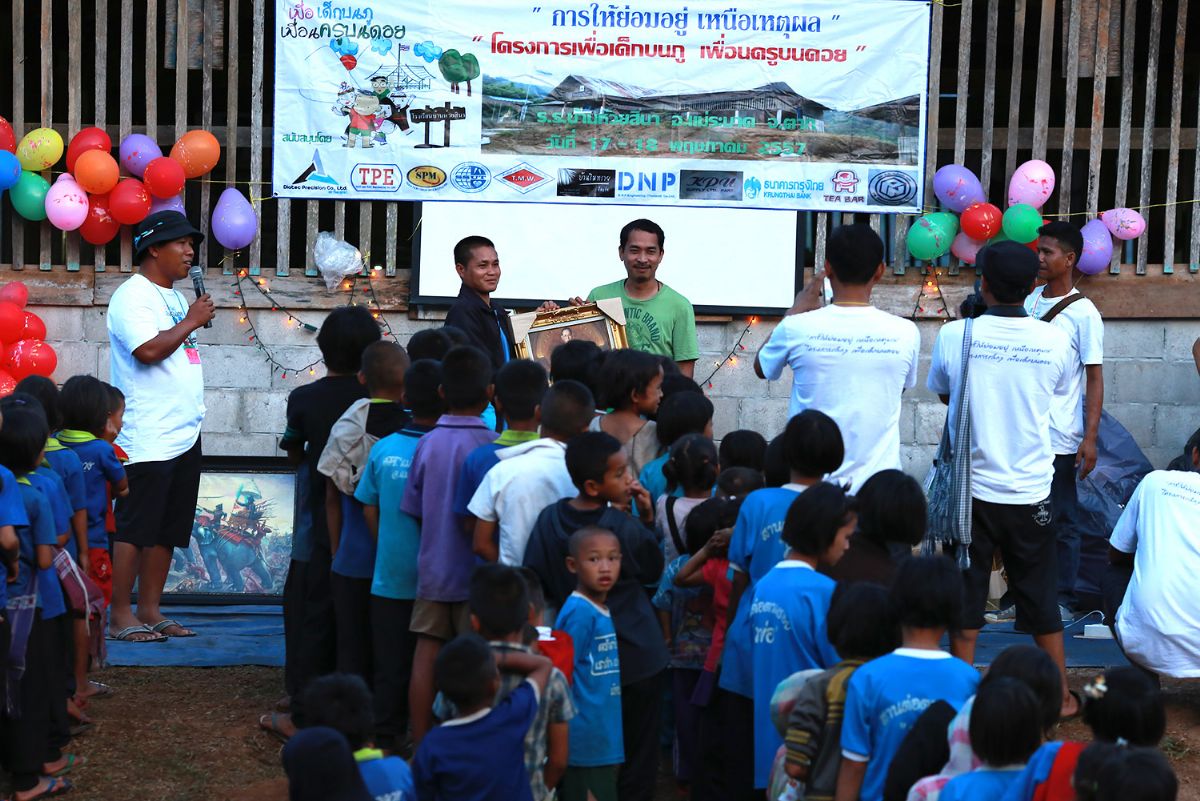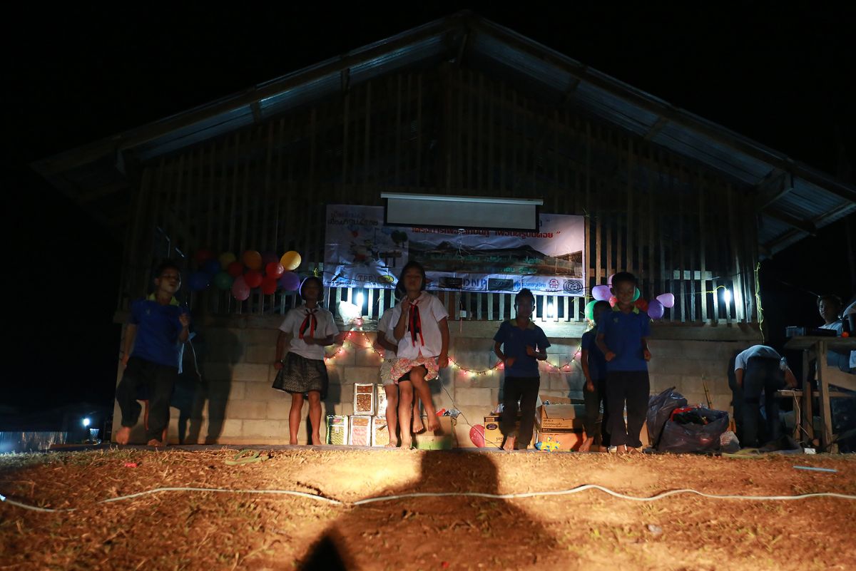 ไม่มีเวที มีแต่เนินดินข้างๆศูนย์ การแสดงที่เด็กๆเตรียมไว้ขอบคุณสำหรับน้ำใจของพี่ๆ
