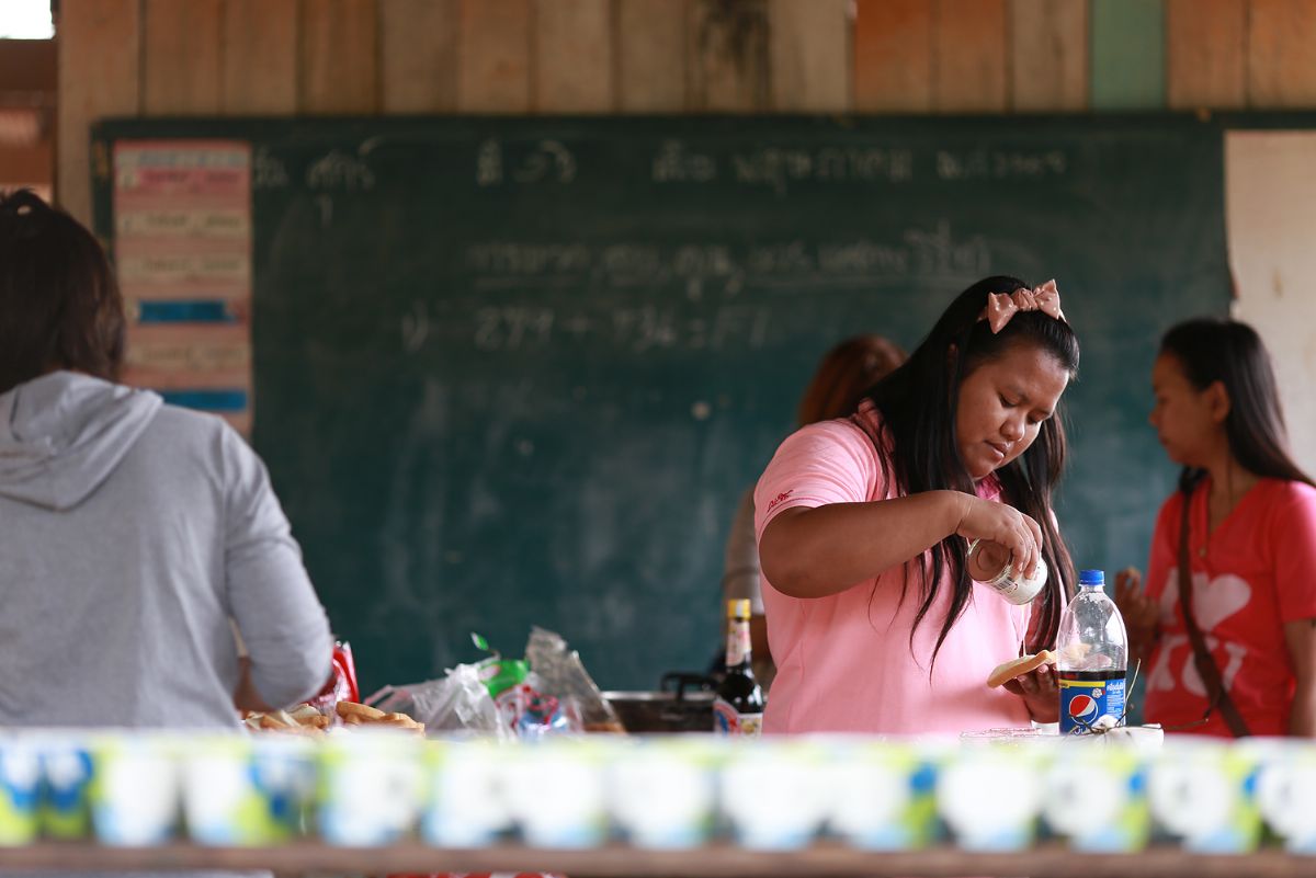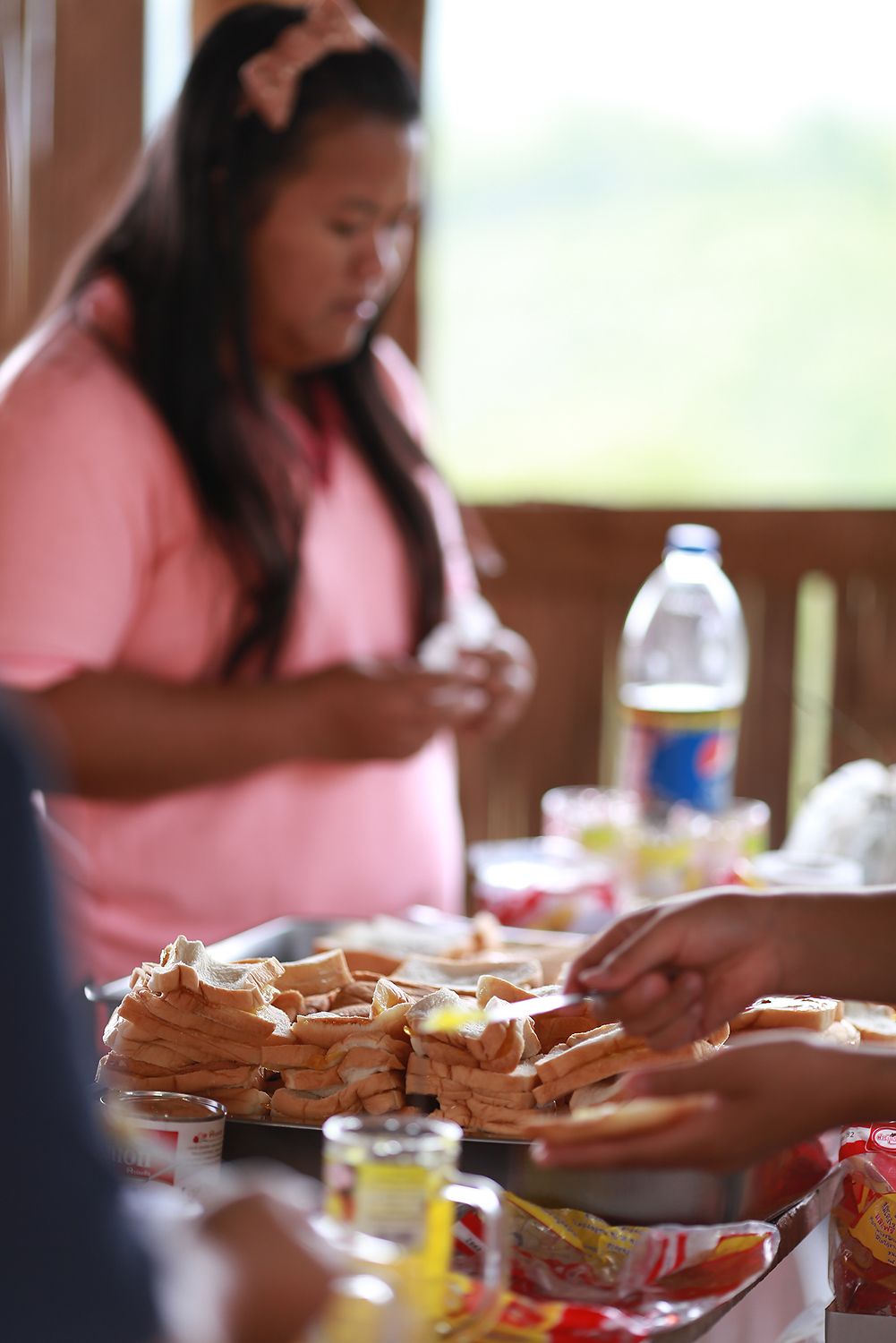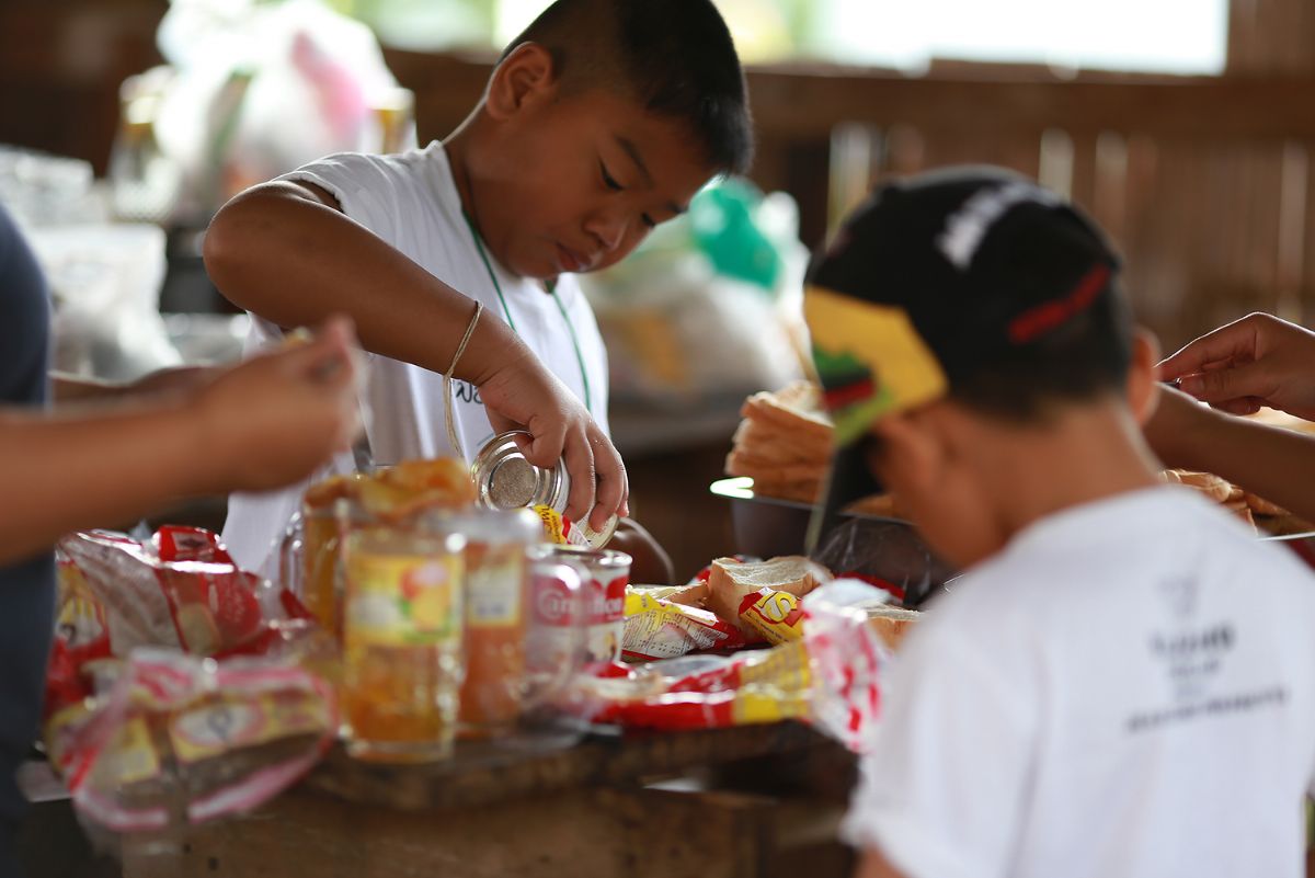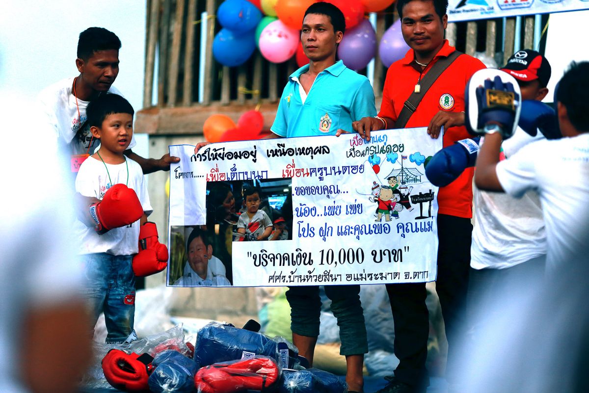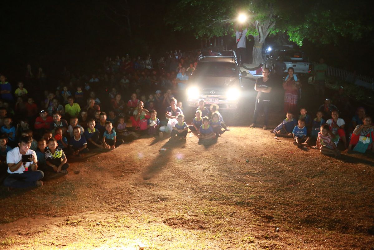 ไม่มีเวที มีแต่เนินดินข้างๆศูนย์ การแสดงที่เด็กๆเตรียมไว้ขอบคุณสำหรับน้ำใจของพี่ๆ