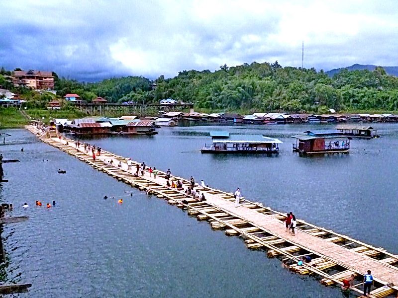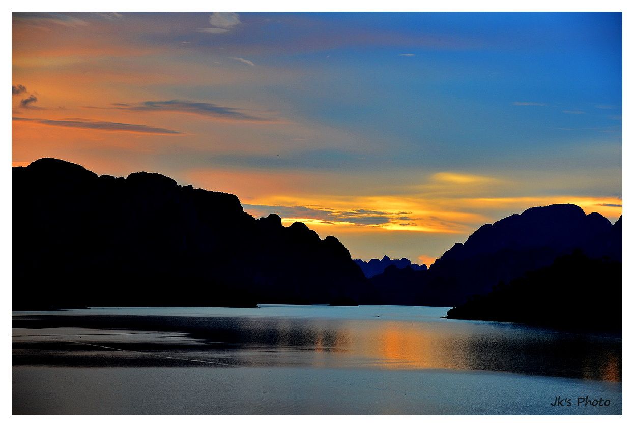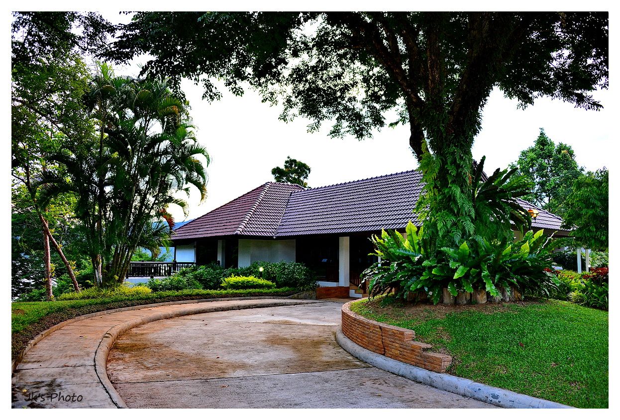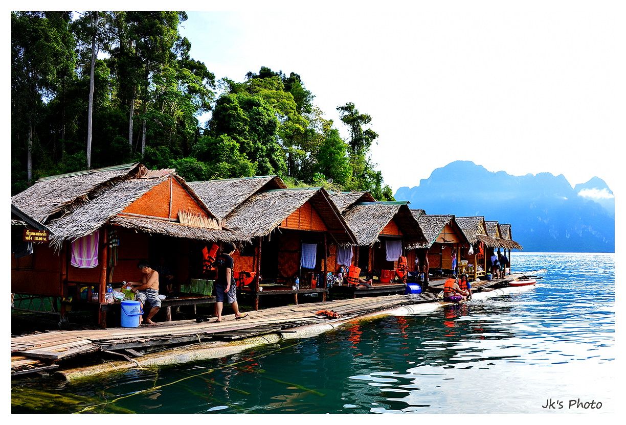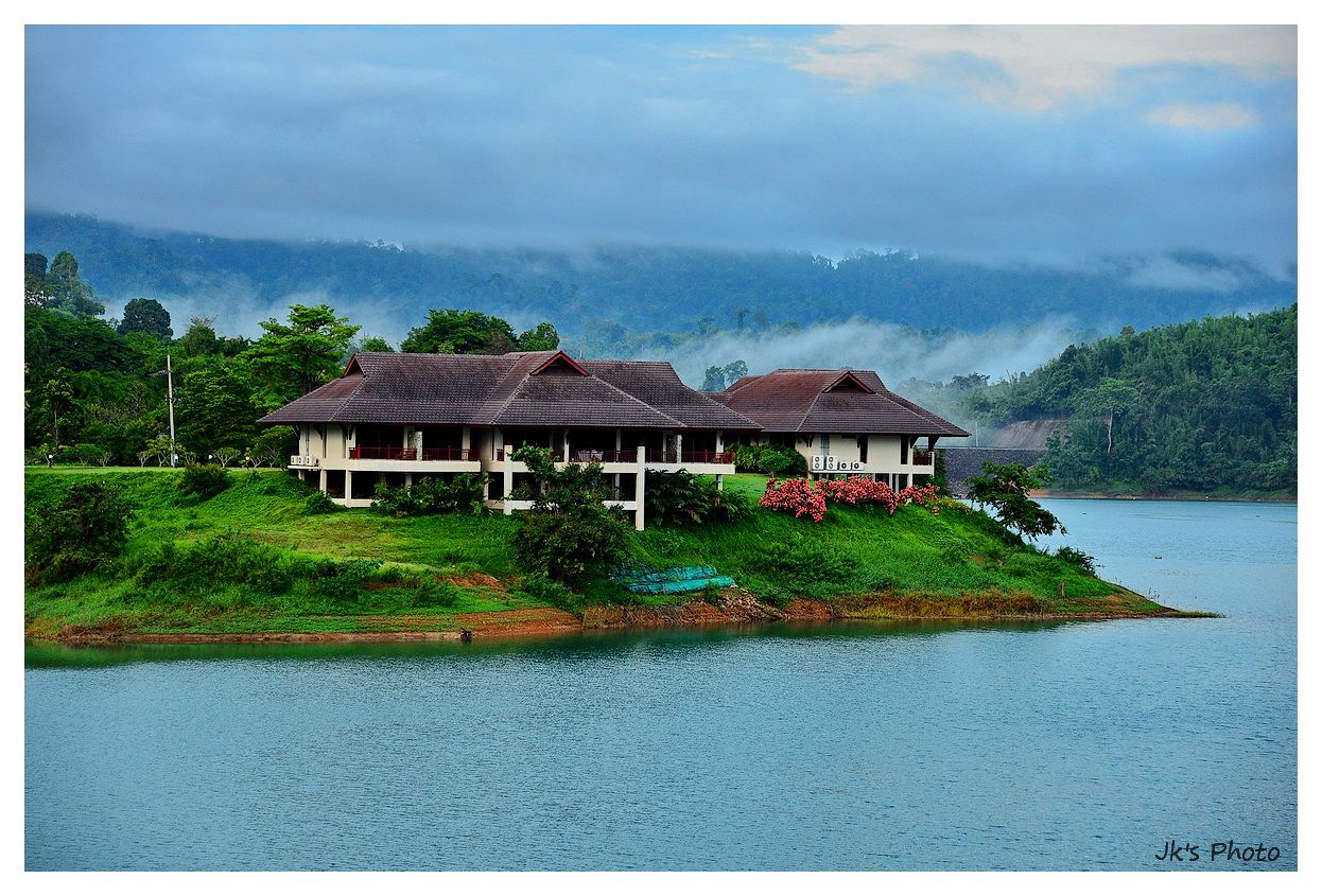 บรรยากาศบ้านพักยามเช้าที่สวยงาม ณ. เขื่อนเชี่ยวหลาน ใกล้พระตำหนัก..