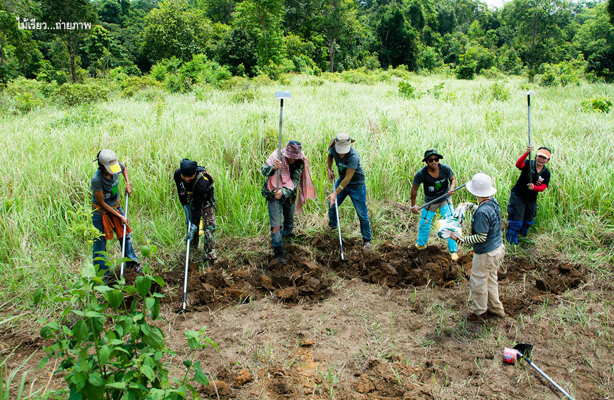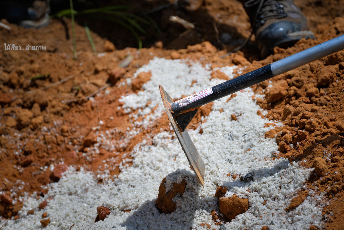 พอถึงที่ทำโป่งเทียมกัน จอบที่แบกมาก็เริ่มขุดดินเพื่อปรุงเกลือและแคลเซียม..จากที่เราเคยได้ยินคำว่า " ดินโป่ง " นี่แหละครับพวกเรามาทำดินโป่งเพื่อเติมสารอาหารให้กับสัตว์น้อยใหญ่ในป่าได้กินกัน