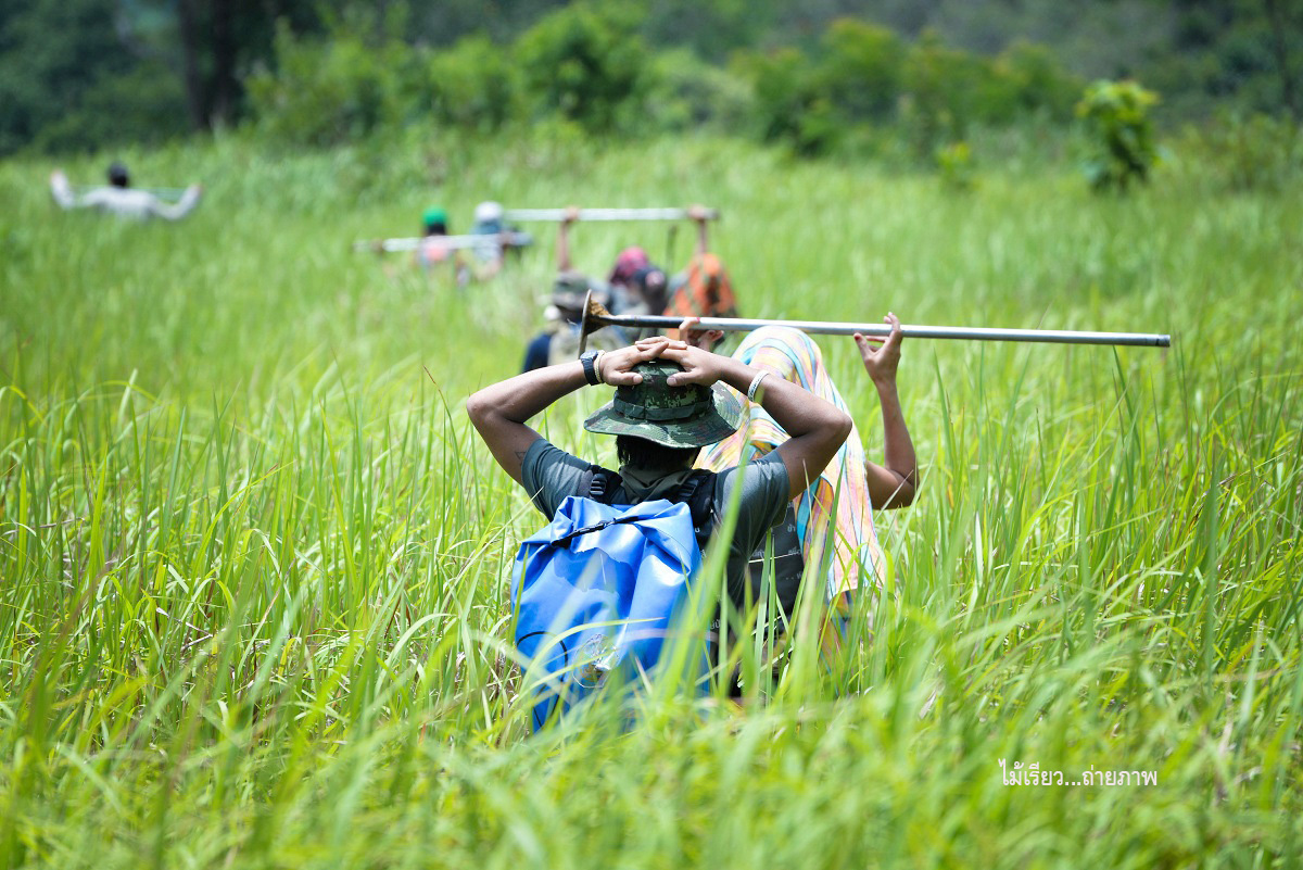 หลังจากทำโป่งเทียมเสร็จก็ต้องเดินกลับจุดที่พักอีกสองกิโลเมตร การเดินผ่านป่าหญ้าคาสูงๆ นั้นเราต้องเก็บมือแขนไว้ที่สูงๆ นะครับ