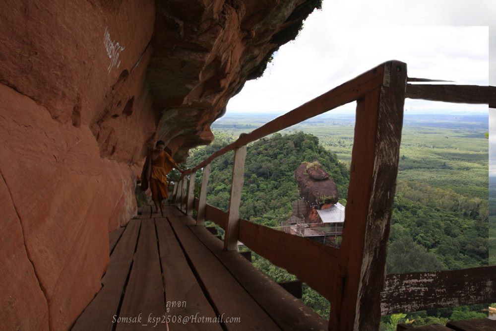 ภาพนี้ผมได้มาโดยบังเอิญ เณรรูปหนึ่งเดินขึ้บันไดไม้มาเพื่อขึ้นภู สวนกับชาวบ้านที่นั่งประนมมือคอยจนเณรเดินผ่านไป นี่คือวัฒนธรรมอีสานกับศาสนาที่ยังคงความเลื่อมใสศรัทธาต่อกันไม่เสื่อมคลาย