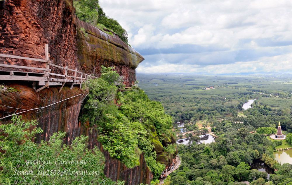 ภาพนี้ถ่ายจากพุทธวิหาร (ภูทอกน้อย) ศาลาที่เห็นไกล ๆ โน้นเป็นสถานปฏิบัติธรรมภูทอกใหญ่ แต่ห้ามนักท่องเที่ยวขึ้นไปนะครับ เจ้าอาวาสองค์ปัจจุบันท่านบอกว่า ห้ามขึ้น ห้ามเที่ยว ห้ามถ่ายรูป วัดดังพอแล้วไม่ต้องการชื่อเสียงอีกแล้ว อยากเที่ยวอยากถ่ายรูปเชิญที่ภูทอกน้อยแห่งเดียว