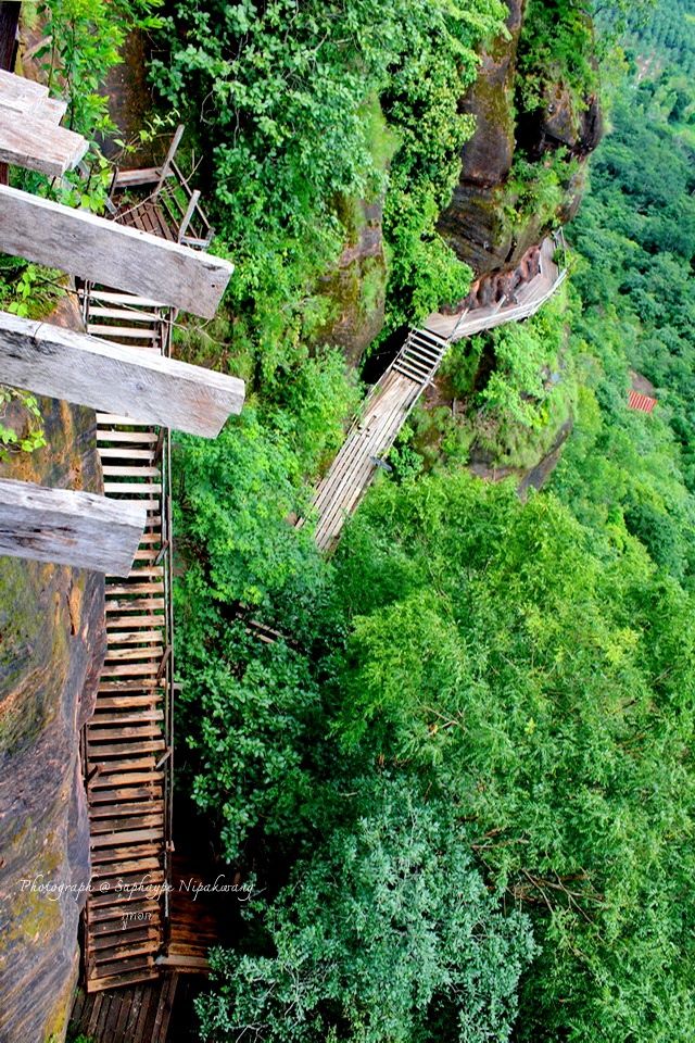 จากขั้น 7 มองลงไปที่สะพานไต่สวรรค์ชั้น 6 และ สะพานชั้นที่ 4 (บางส่วน)ซึ่งปัจจุบันชำรุด และ ปิดไปเรียบร้อยแล้ว ซึ่งน่าเสียดายอย่างยิ่ง
