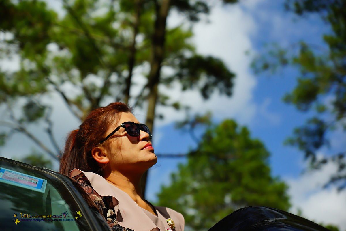 แหม่มยืนหน้าสูดอากาศบริสุทธิ์ซะเต็มปอด
