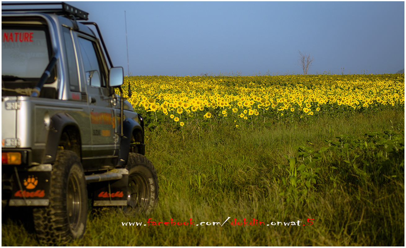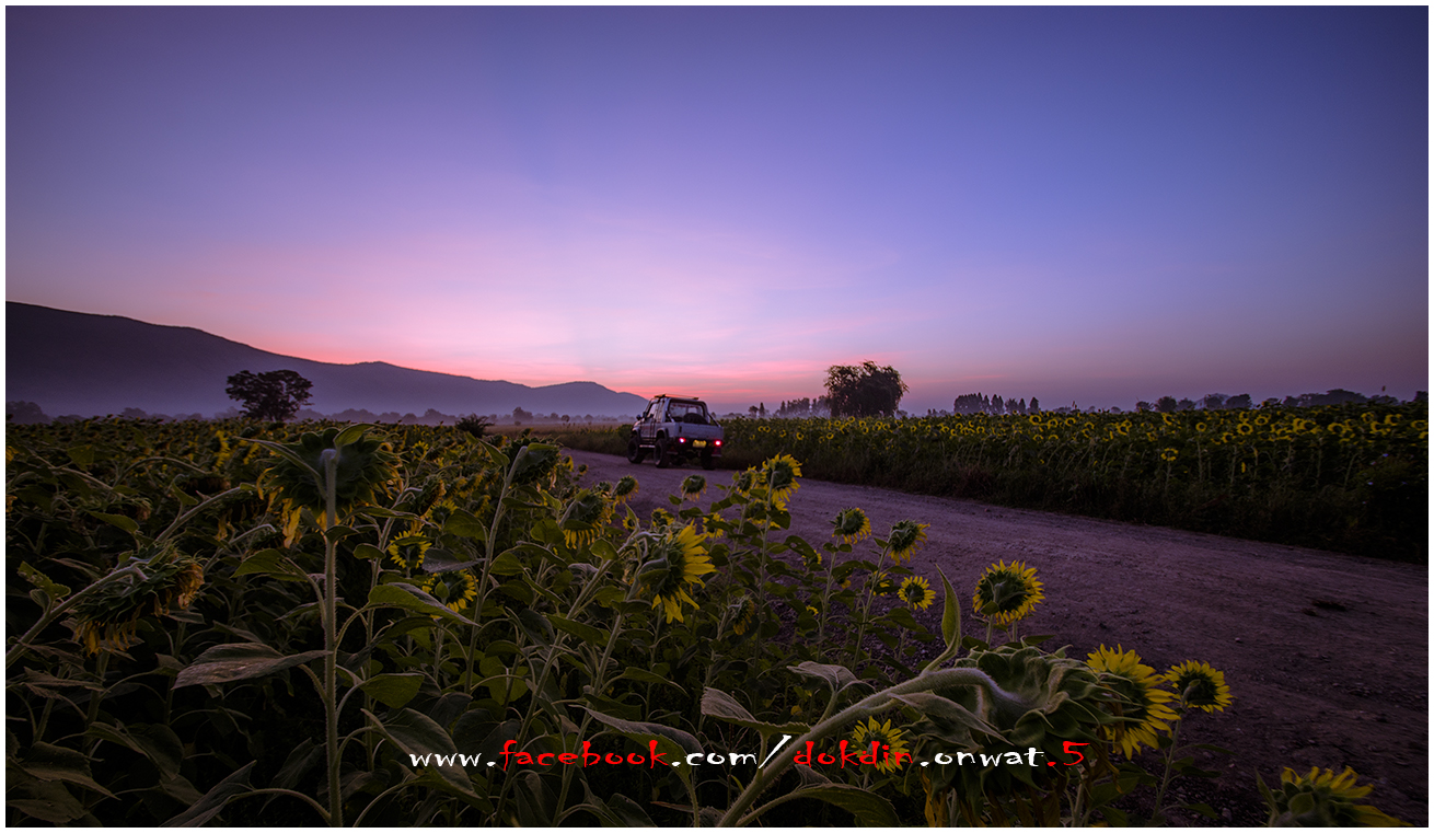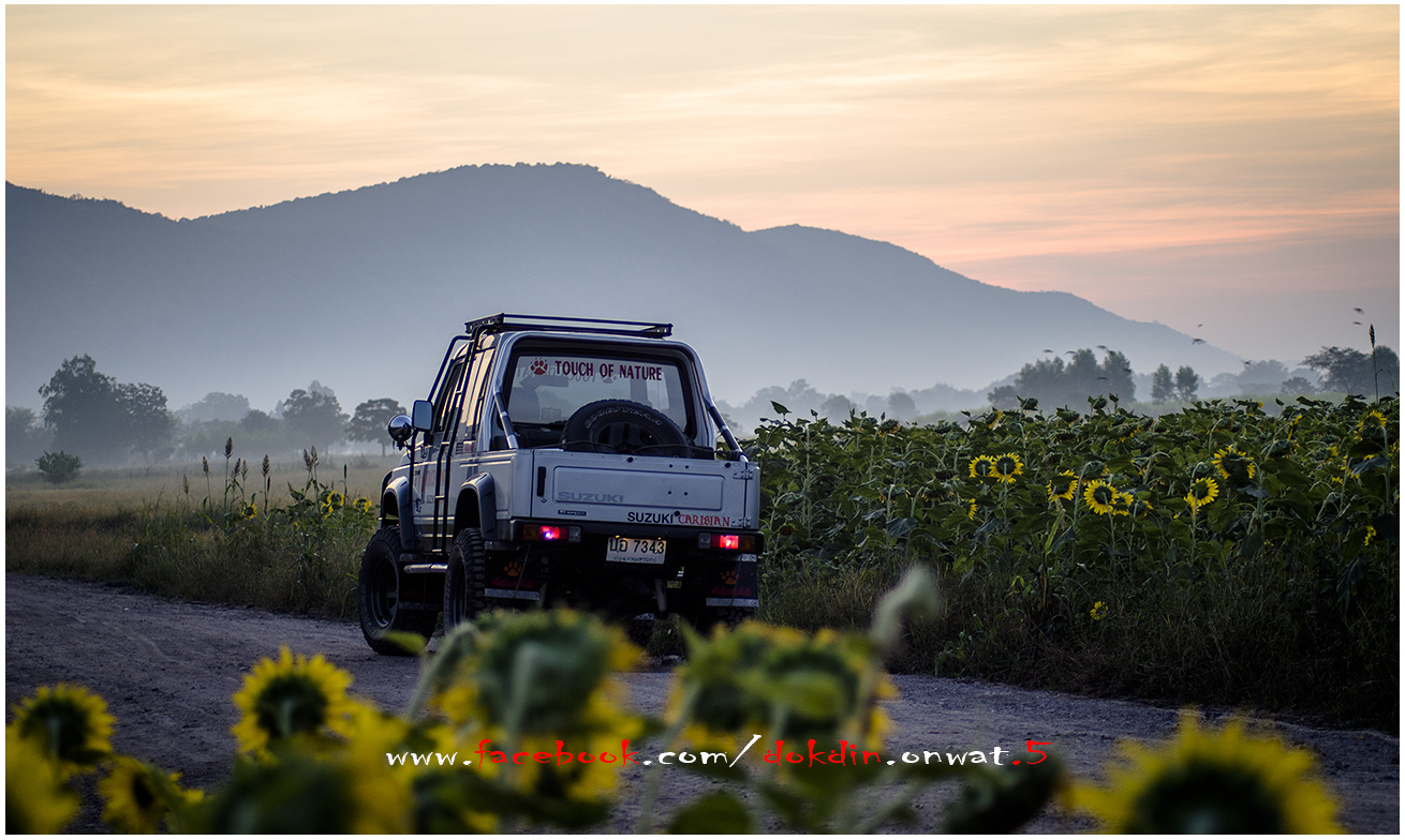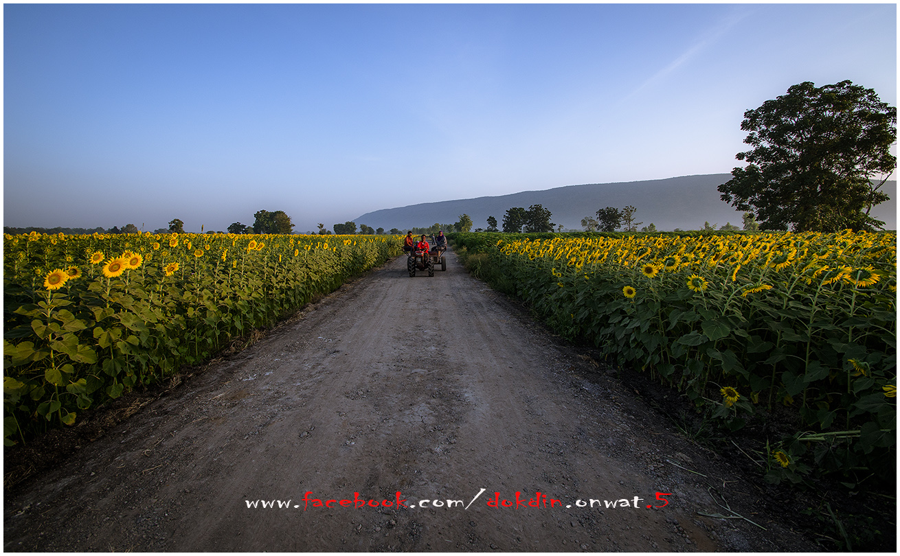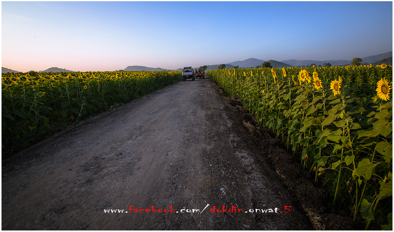 เราเข้าไปข้างในทุ่งทานตะวันแต่เช้า..เพิ่งมารู้ที่หลังว่าเขาปิดทางเข้าไม่ให้รถเข้าตอน9โมงเช้า
