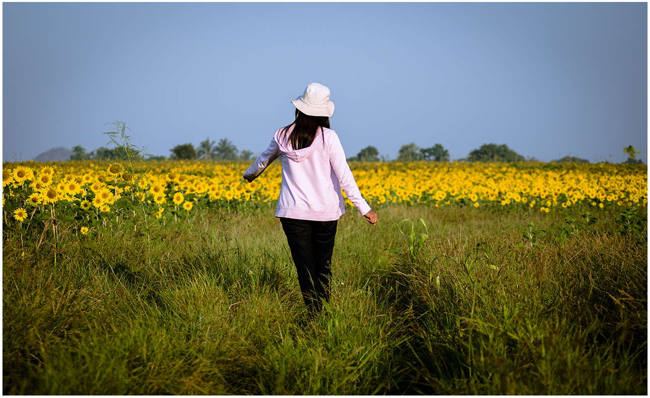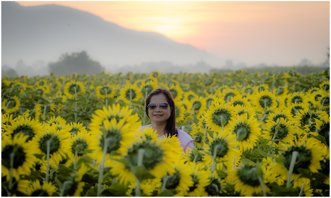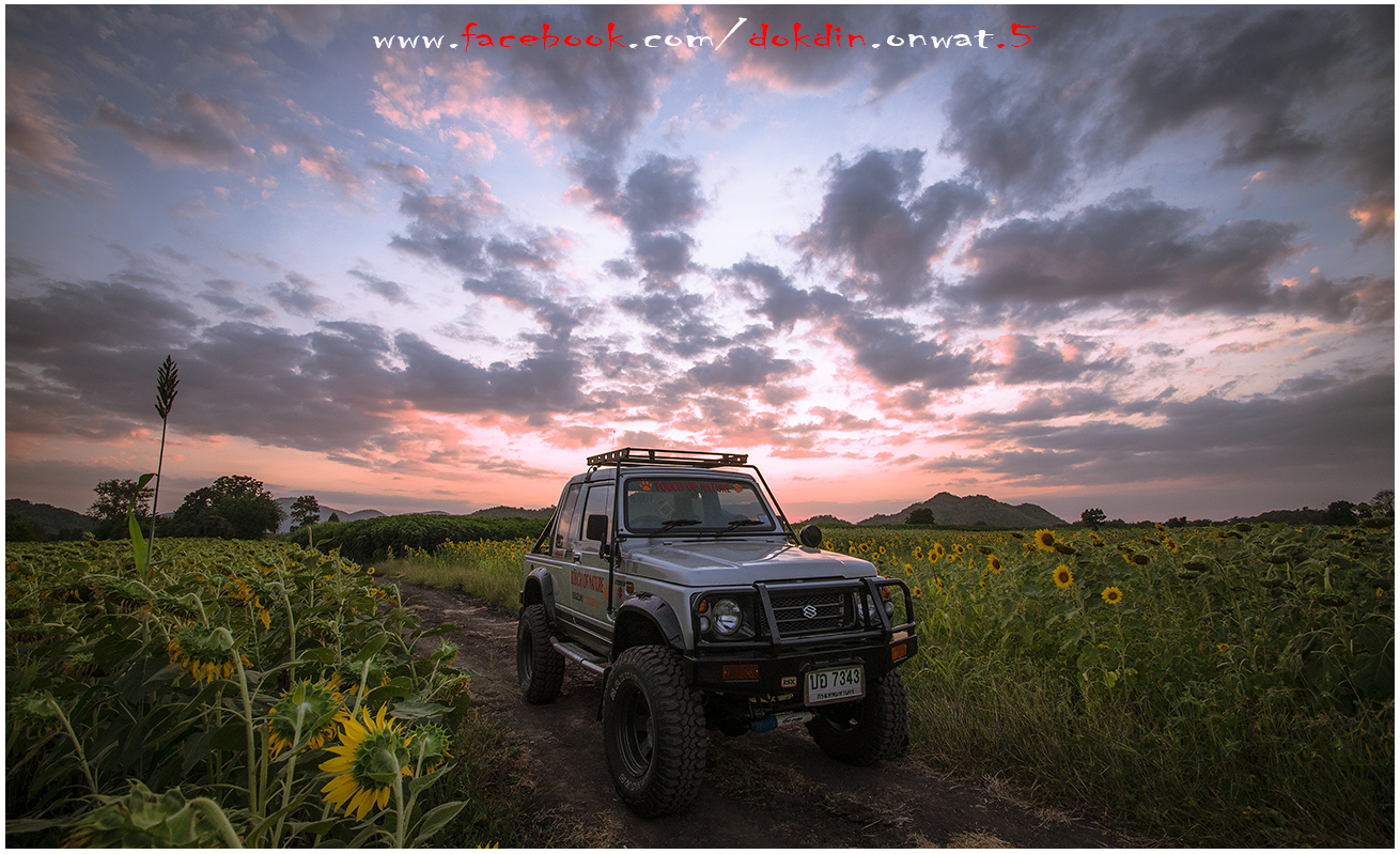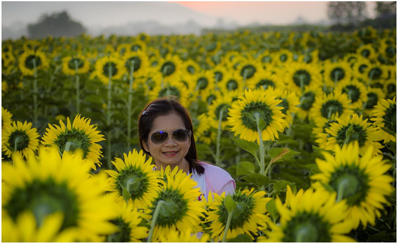เราเข้าไปข้างในทุ่งทานตะวันแต่เช้า..เพิ่งมารู้ที่หลังว่าเขาปิดทางเข้าไม่ให้รถเข้าตอน9โมงเช้า
