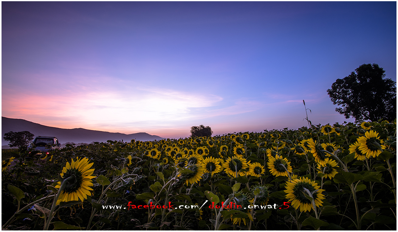 เช้าตื่นตั้งแต่ตี5เดินทางไปบ้านดงที่เดิมแต่เช้า..ถามชาวบ้านไว้แล้วว่ามีดอกทานตะวันกว่า2พันไร่เลยที่เดียวครับ