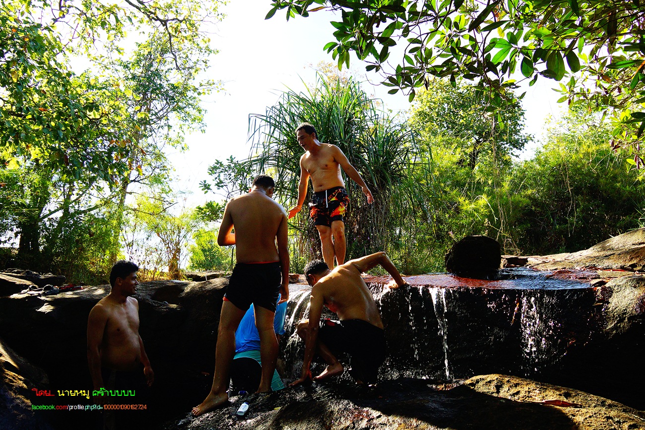กลับมากินอาหารเช้าเก็บสัมภาระ ไปอาบน้ำที่น้ำตกห้วยพอกกัน น้ำเหลือน้อยแต่เย็นชื่นใจ