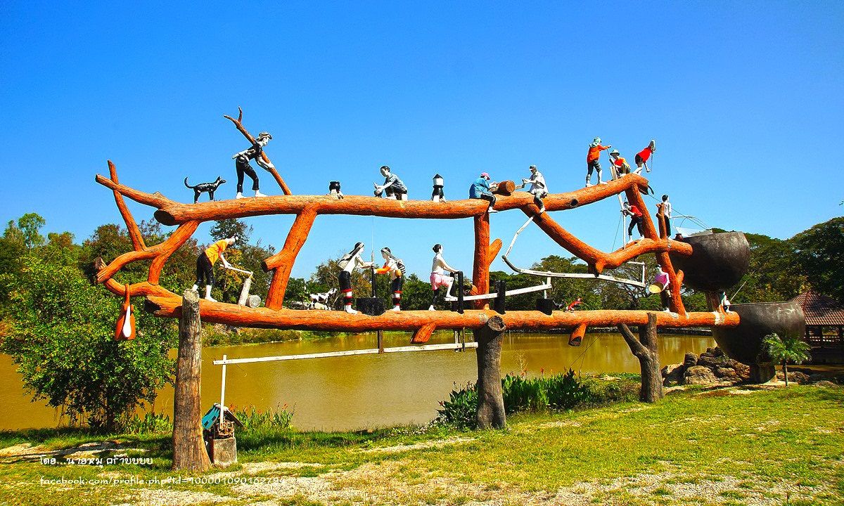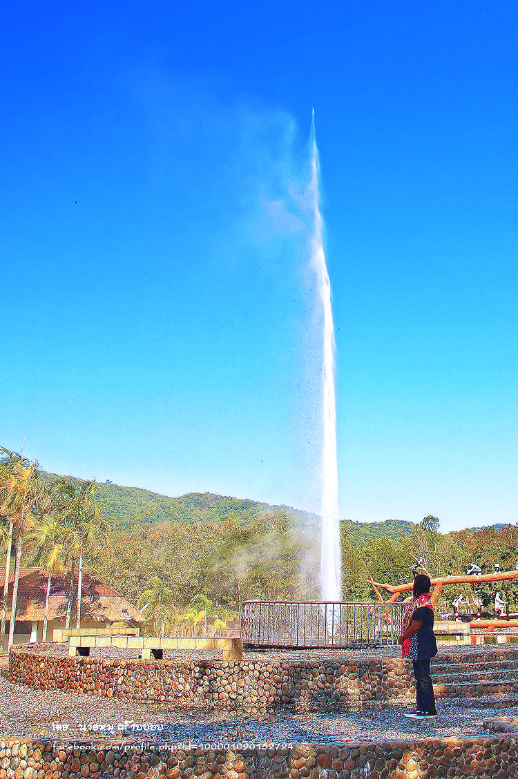 ด้านซ้ายมือใกล้หลัก กม. 78 อยู่ห่างจากที่ว่าการอำเภอแม่จัน ถนนแม่จัน - ฝาง ประมาณ 8 กิโลเมตร และอยู่ใกล้กับที่ทำการองค์การบริหารส่วนตำบลป่าตึง ประมาณ 700 เมตร ติดกับถนนเส้นทางแม่จัน ฝาง เป็นสถานที่ท่องเที่ยวหลักของตำบล และอำเภอแม่จัน โดยสร้างเป็นสวนหย่อมใจริมทาง สำหรับเป็นจุดแวะพักรถระหว่างทางไป-กลับดอยแม่สลอง เป็นบ่อน้ำพุร้อนที่สวยงาม ภายในบริเวณโป่งน้ำร้อนมีลานน้ำพุร้อน ซึ่งมีความสูงถึง 10 เมตร อุณหภูมิของน้ำอยู่ระหว่ง 70-109 องศาเซลเซียส โดยสร้างฐานคอนกรีตล้อมบริเวณน้ำพุร้อน มีอาคารอาบน้ำแร่เพื่อสุขภาพทั้งห้องธรรมดา และห้องวีไอพี มีห้องแช่ 8 ห้อง ห้องตักอาบ 6 ห้อง (อาคารอาบน้ำแร่กำลังดำเนินการปรับปรุง ยังใช้การไม่ได้) สอบถาม โทร. 053-772-577 , 081-9982-593 บริเวณรอบๆ บ่อน้ำร้อน มีสระน้ำและสวนสุขภาพเพื่อให้ผู้ที่มาพักผ่อน ได้อาบน้ำแร่เพื่อสุขภาพที่สามารถรักษาโรคผิวหนังและโรคปวดต่างๆ