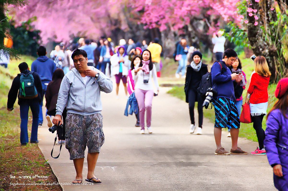 คนเต็มไปหมด ปีนี้ดอกนางพญาเสือโคร่งสวยมากๆครับ ทุกคนก็อยากมาชม