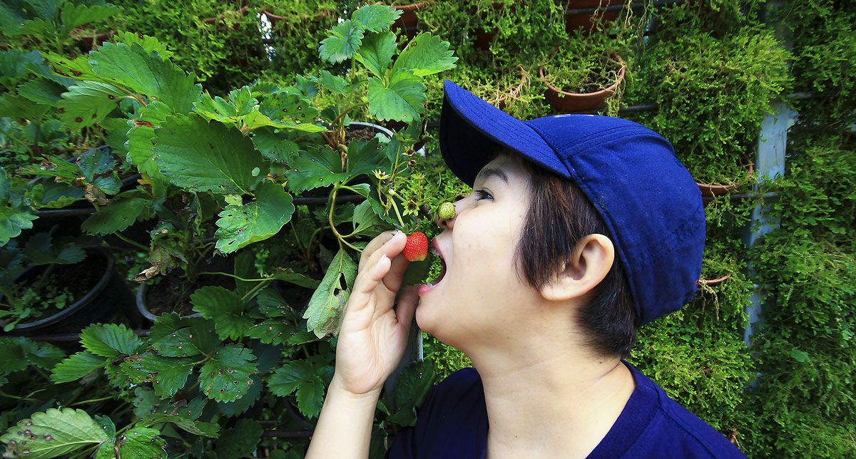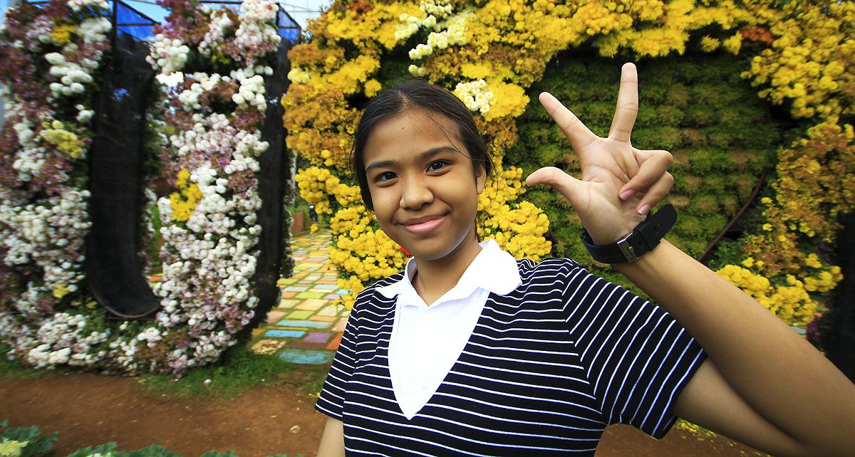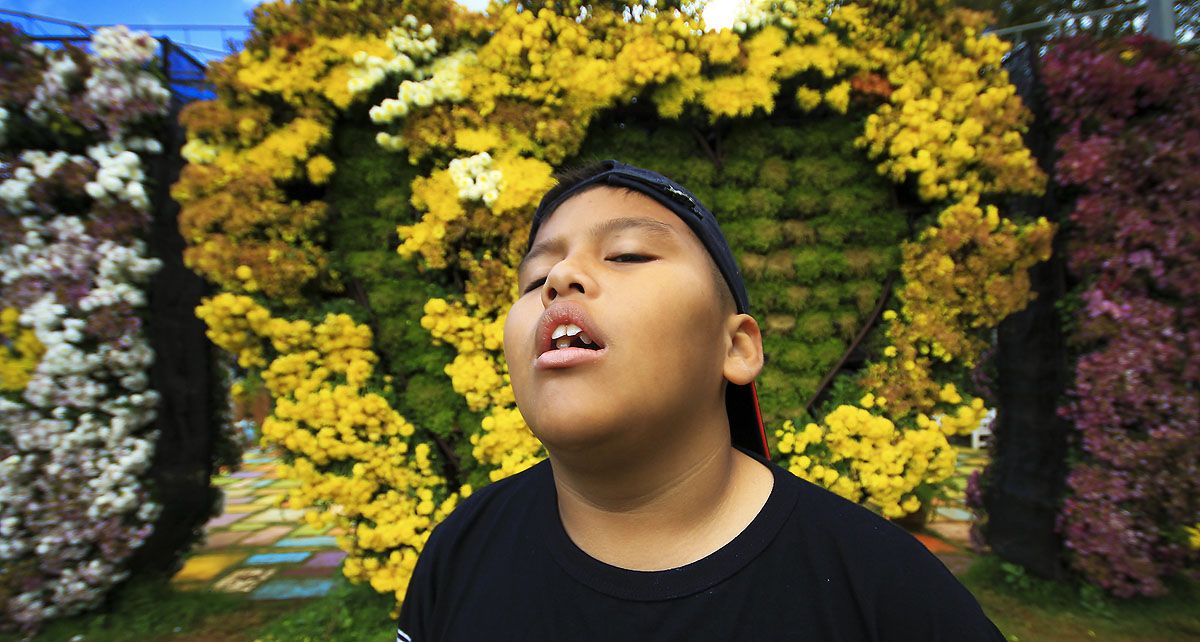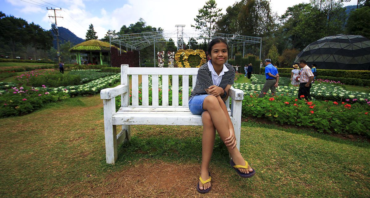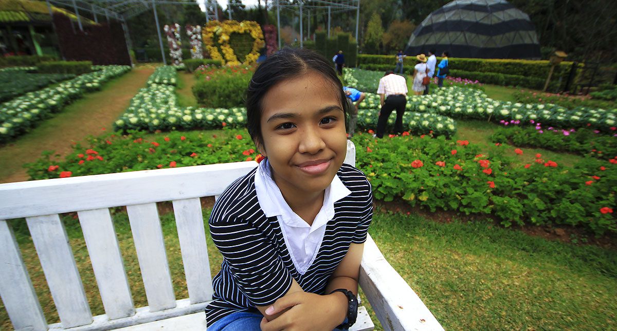 เด็กๆ เจอดอกไม้ และอากาศที่เย็นสบาย มีความสุข หน้าตาสดใสกันเลยครับ