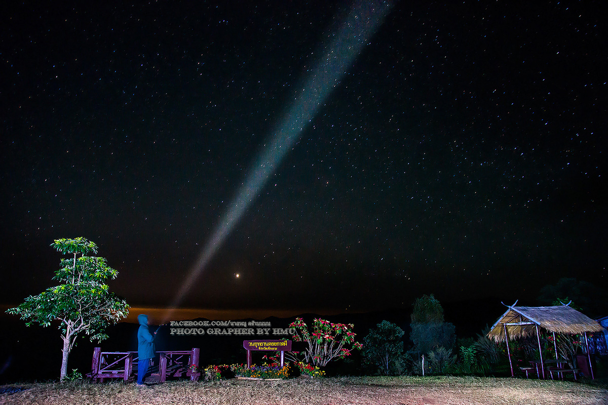 นายหมูนอนดึกตื่นเช้าครับ เช้านี้ก็เช่นกัน เห็นเขาว่า ช้างเผือก จะมากลางคืน เลยเอาไฟส่องหายังไง ก็ไม่เจอ