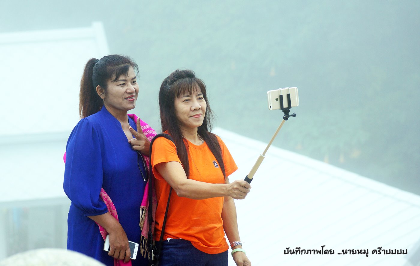 จากนั้นเราก็มาเซลฟี่กันต่อ ที่อินทนนท์ 18 องศา เวลาไกล้เที่ยง หมอกตรึม