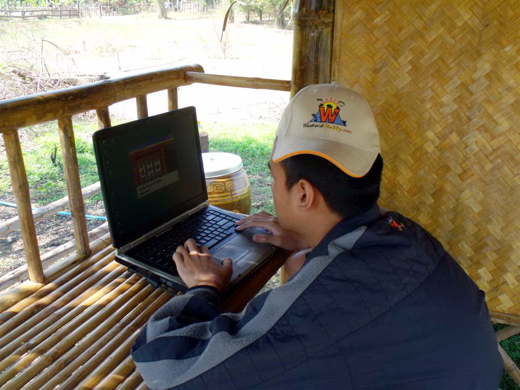แต่มุม ส่วนตัว ของน้องสอง ง่ายจัง พกมาเองจากบ้าน โน๊ตบุ๊ค.....
