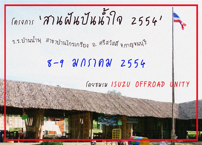 โครงการสานฝันปันน้ำใจ 2554 ณ.โรงเรียนบ้านน้ำพุสาขาห้องเรียนไกรเกรียง ซึ่งตั้งอยู่ตอนเหนือสุดของอ่างเก็บน้ำ