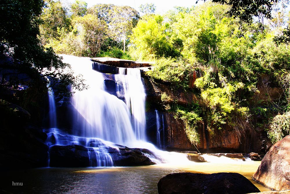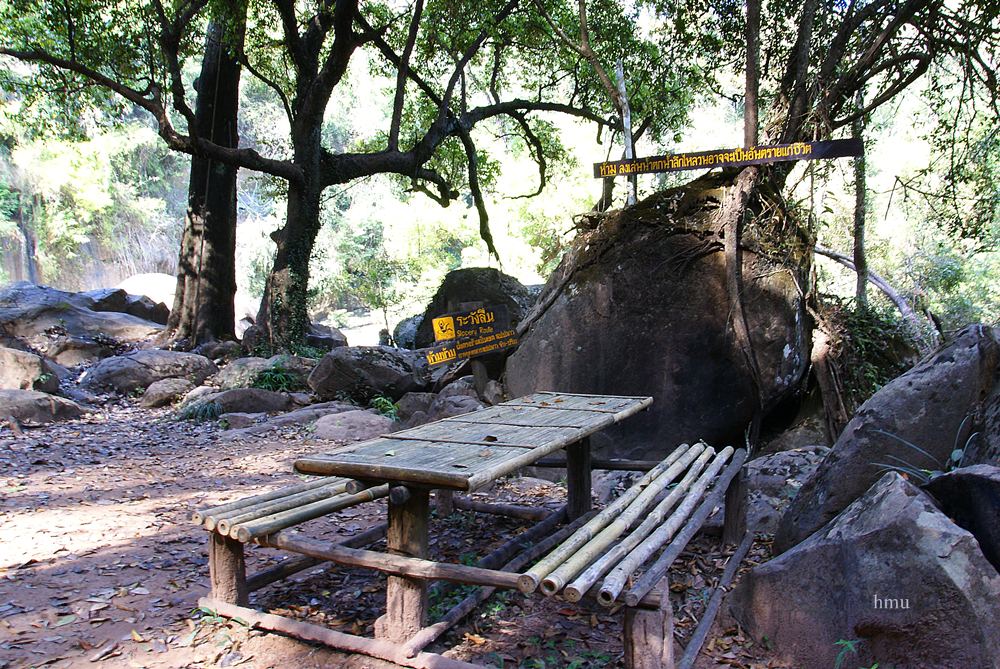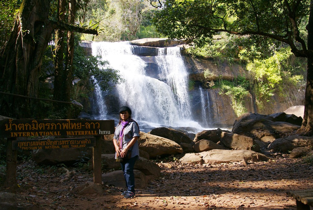 เป็นน้ำตกที่สวยงาม กั้นแบ่งเขตไทยลาว ห้ามข้ามไปฝั่งโน้น อาจโดนทหารลาวจับ ปรับได้ มีแต่เราสองคน วังเวงเย็นๆพิลึก เลยกลับขึ้นมา