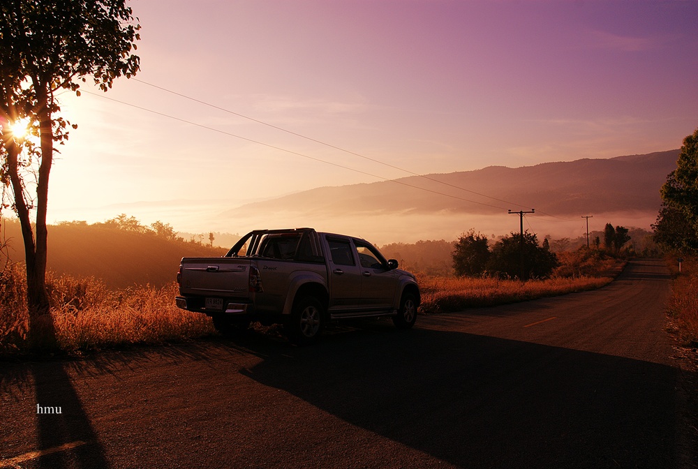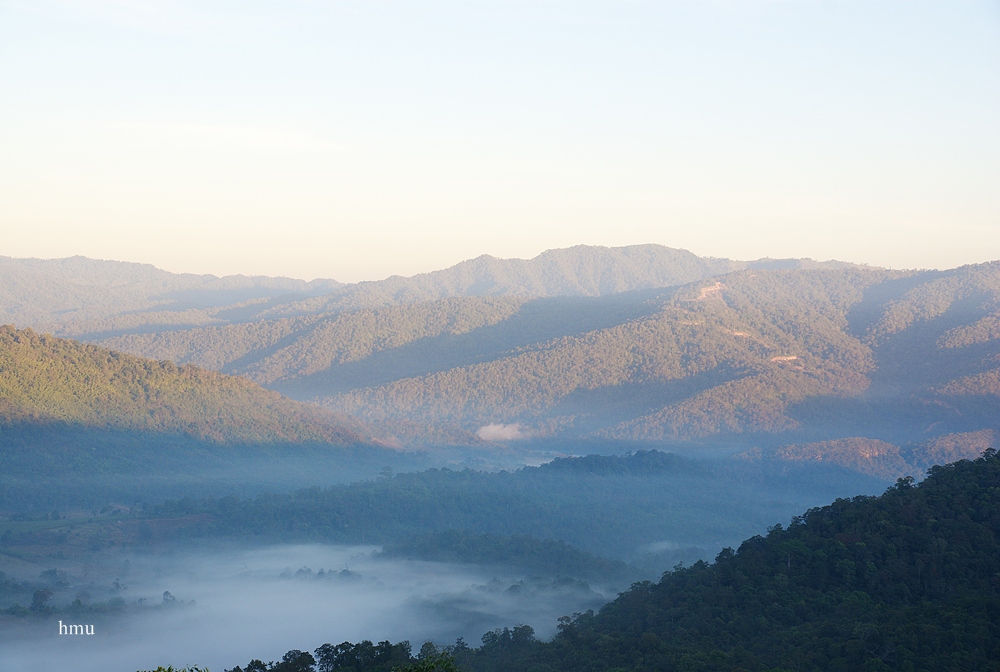 ระหว่างทาง ออกจาก อชฯ ประมาณ สองกม. กำลังจะมุดหมอกที่เห็นตรงภูหัวฮ่อม