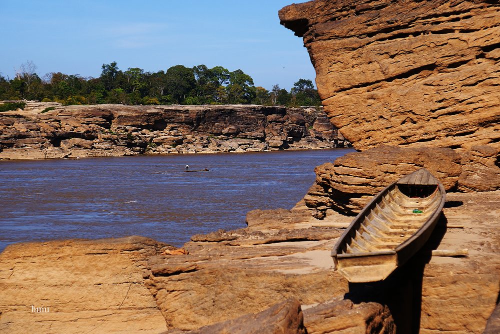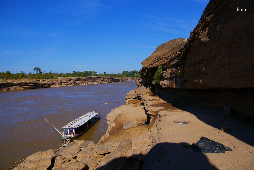 โน่นเรือจะพาเราไปถึง ปากบ่อง จุดที่แคบที่สุด ของแม่น้ำโขง กว้างประมาณ 56.เมตร