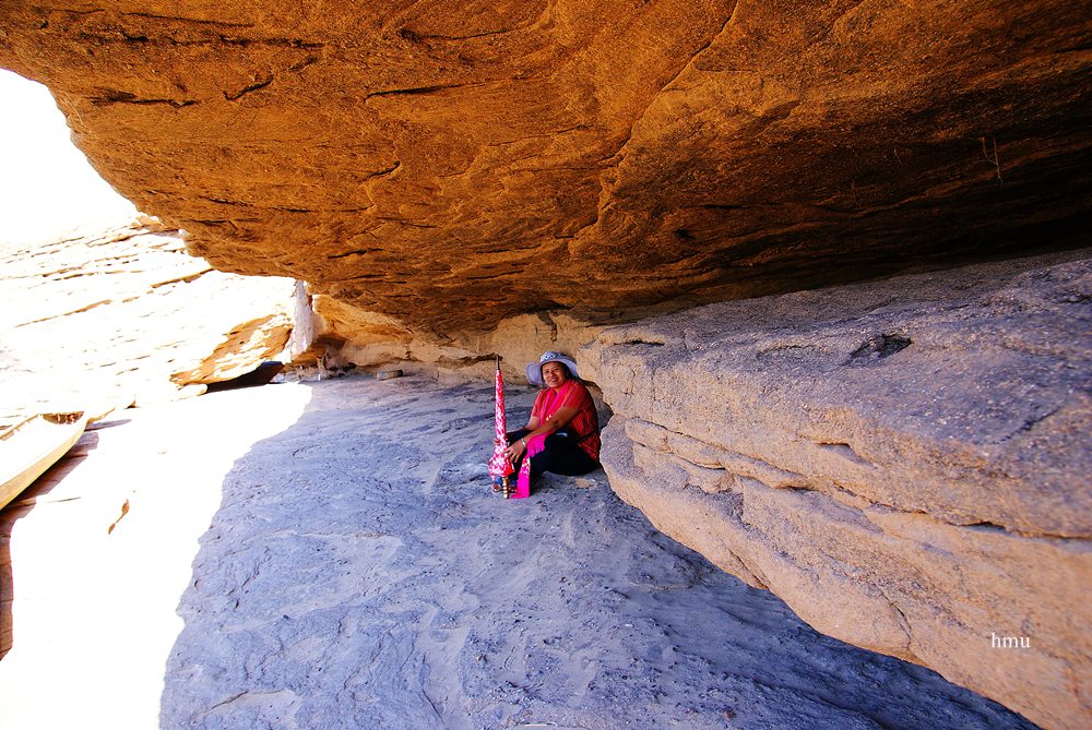 แหม่มตามลงมา หลบเข้าใต้ เทิบหิน เพิงหิน ถ้ำ (ไม่รู้จะเรียกยังไง)