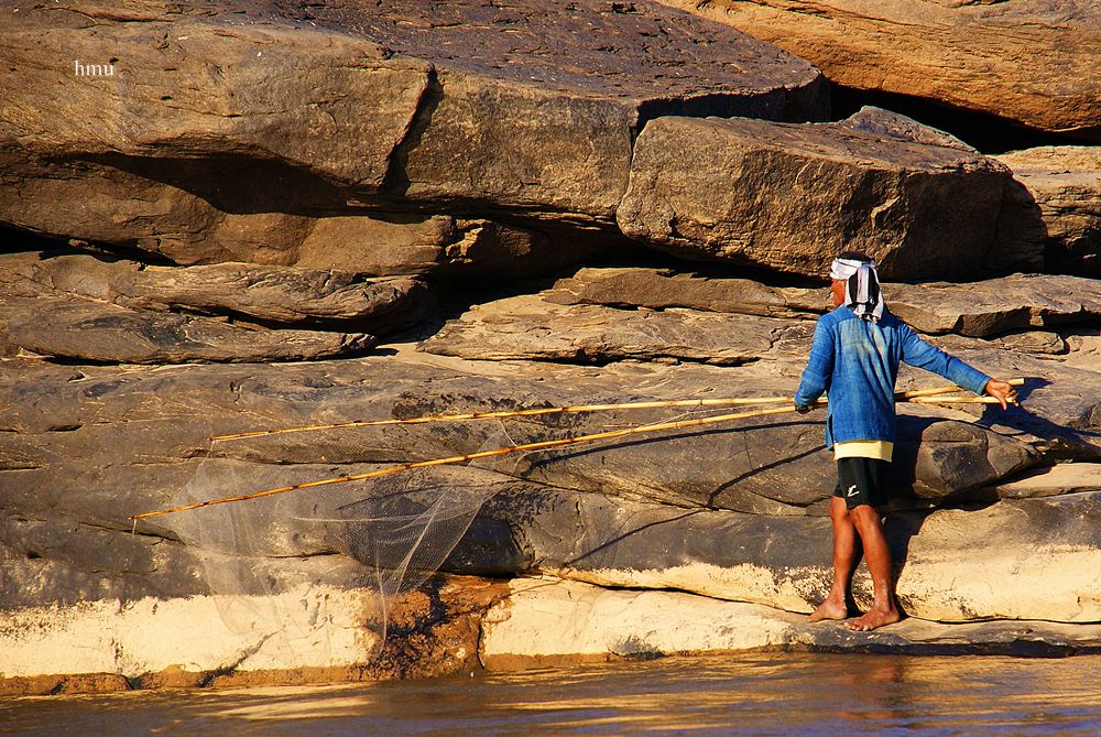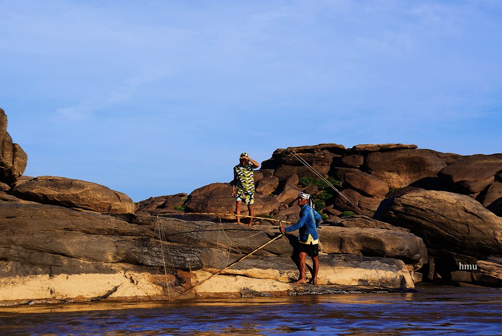 ลุงคนนี้ กับอาชีพดั้งเดิม ครับเอาสวิงยักษ์ ตักปลาที่ว่ายผ่าน ช่องแคบ