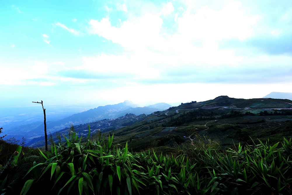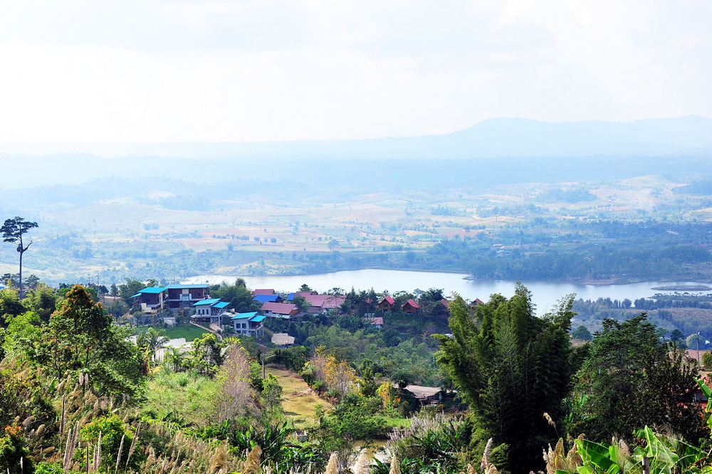 วิวบ้านเรือนเชิงเขาครับ เดี๋ยวนี้มี ที่พักแรม แบบกางเต้นท์ แบบรีสอร์ท เยอะมากครับ มีให้เลือกพักกันตามสบาย
