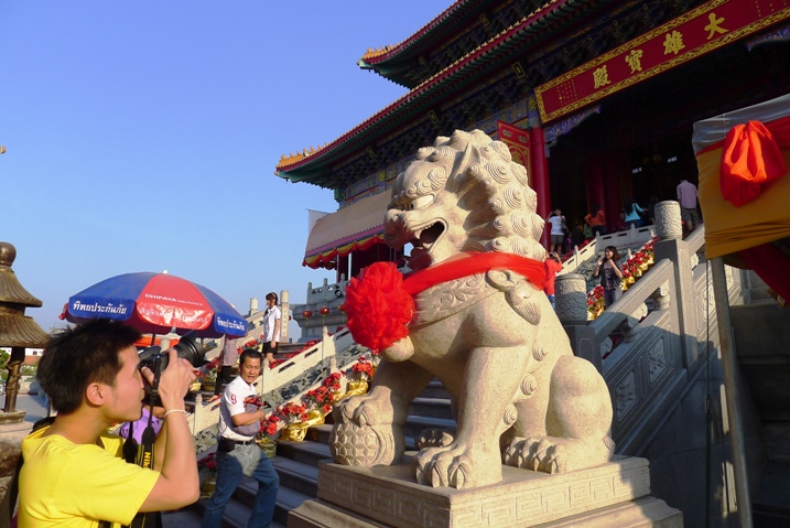 รูปปั้นสิงโตตัวนี้ ฮอตไม่เบา มีคนมาถ่ายรูปอยู่ไม่ขาด