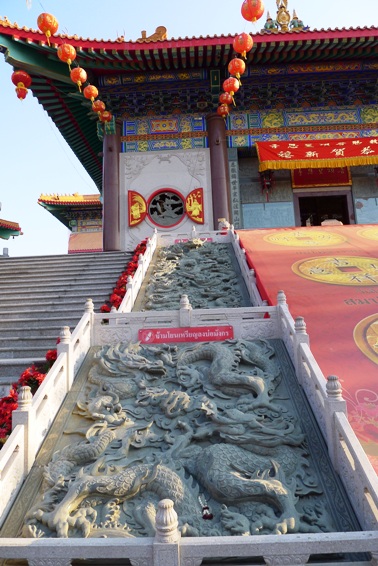 ครอบครัวป้าแอ๋วได้มีโอกาสไปไหว้วัดจีนที่บางบัวทอง เพราะปีนี้ปีระกาเป็นปีชง วัดเล่งเน่ยยี่2 หรือวัดบรมราชากาญจนาภิเษกอนุสรณ์ฯ ก่อสร้างตามแบบสถาปัตยกรรมในยุคหมิง-ชิง โดยจำลองมาจากพระราชวังต้องห้ามในกรุงปักกิ่ง มีความสง่างามและมีรายละเอียดการตกแต่งที่ประณีตยิ่ง โดยทางวัดได้เชิญช่างฝีมือชั้นครูจากประเทศจีนมาดำเนินการก่อสร้างโดยตรง วิหารแต่ละหลังประดับด้วยลวดลายภาพเขียนสีพุทธศิลป์แบบจีนใช้สีน้ำเงิน แดงและทองเป็นหลัก ตามผนังและเพดานมีคาถา โอม มา นี ปะ หมี่ ฮง เป็นตัวอักษรสีทอง ที่เชื่อว่าขับไล่สิ่งชั่วร้ายต่าง ๆ ได้ หลังคาวิหารมุงด้วยกระเบื้องเผาแบบจีน สีเหลืองเข้ม ที่ตรงมุมหลังคาทั้ง 4 มุมประดับด้วยรูปสัตว์มงคล ได้แก่ เทวดาขี่หงส์ มังกร สิงโต ม้าน้ำ ม้าเทวดา แพะเทวดาเขาเดียว กระทิงเทวดา ปลาเทวดาและนกเค้าแมว นอกจากนี้ รายรอบพระวิหารยังประดับด้วยหินแกะสลักต่าง ๆ มากมายซึ่งล้วนนำมาจากสาธารณรัฐประชาชนจีน จึงเป็นสถานที่อีกแห่งหนึ่งซึ่งเหมาะอย่างยิ่งแก่การศึกษาพุทธศิลป์ของจีน