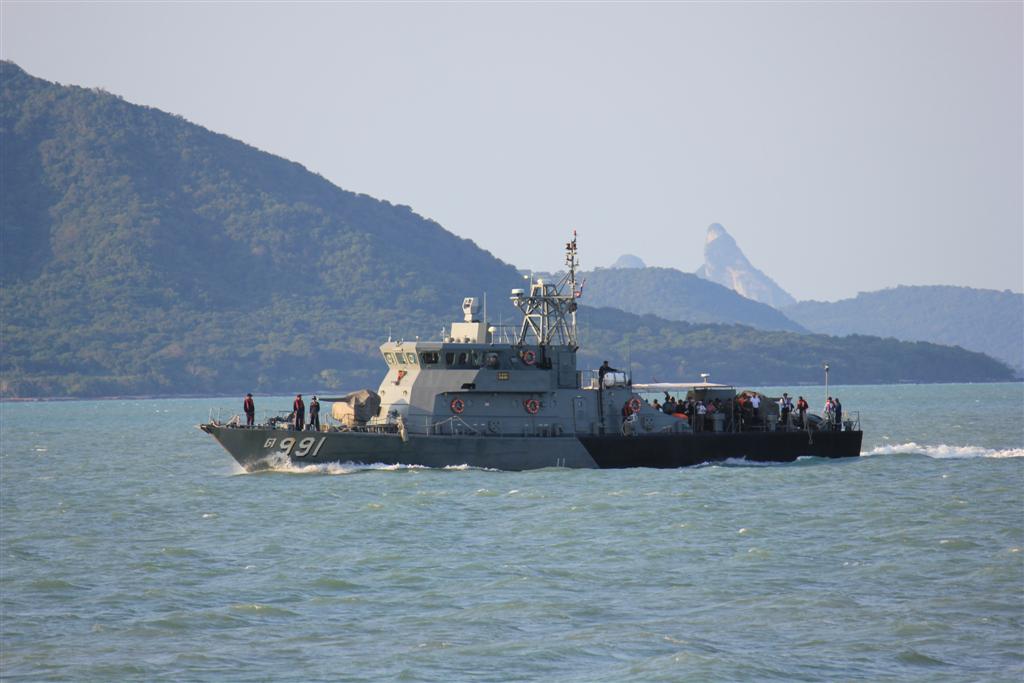 เรือตรวจการณ์ มาจากเกาะพะลวย ส่งท่านสุเทพขึ้นท่า เลาว่าเรือรั่วเสียเวลา ต้องเปลี่ยนเรือ เลยมาช้า