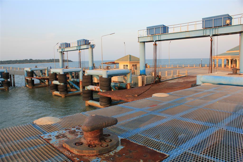 ทางเดินบนสะพานทอด ไปลงแลมป์ เรือเทียบท่า