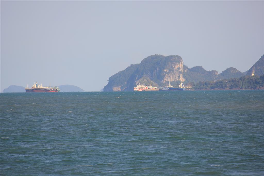 จากบนสะพาน ไปทางทิศเหนือ ด้านหลังเรือตรวจการณ์ วันนี้ ถือว่าอากาศดีนะครับ มองผ่านเกาะนกเภา ถัดไปโผล่มาน้อยหน่อย เกาะเชือก ใม่มีคนอาศัย ใม่มีน้ำไฟใช้ แต่ผู้มีกะตางมากครอบครองอยู่ เลาหนึ่งว่า ใม่ใช่เขาว่า จะมีโครงการรีสอร์ทขึ้นสัก 40 ห้องเร็ว ๆนี้