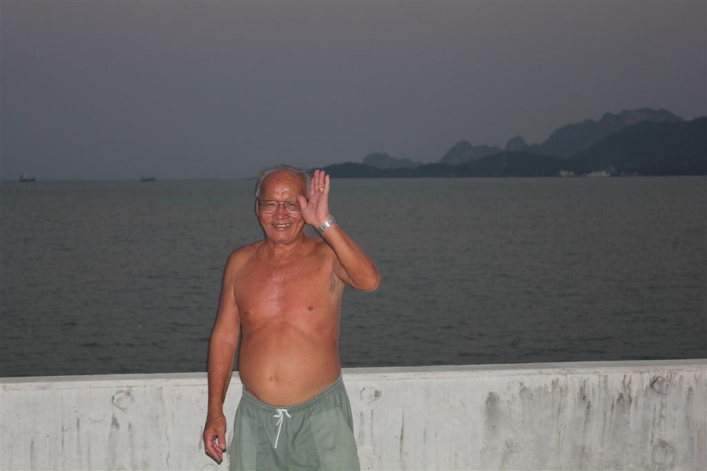 ทักทายคุณลุง ขอถ่ายรูป แกเดินออกกำลังกาย ไปมาหลายรอบแล้ว
