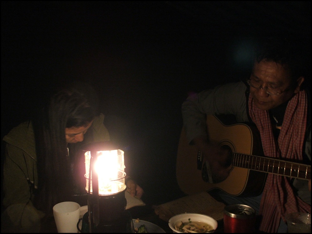 ในเสบียงเรา มีแต่หมูกับหมู ไม่กล้าเอาออกมาทำ กินข้าวกับไข่เจียว แต่ก็คุ้มค่า ได้เพื่อนใหม่คุยกันจนเป็นญาติแทน