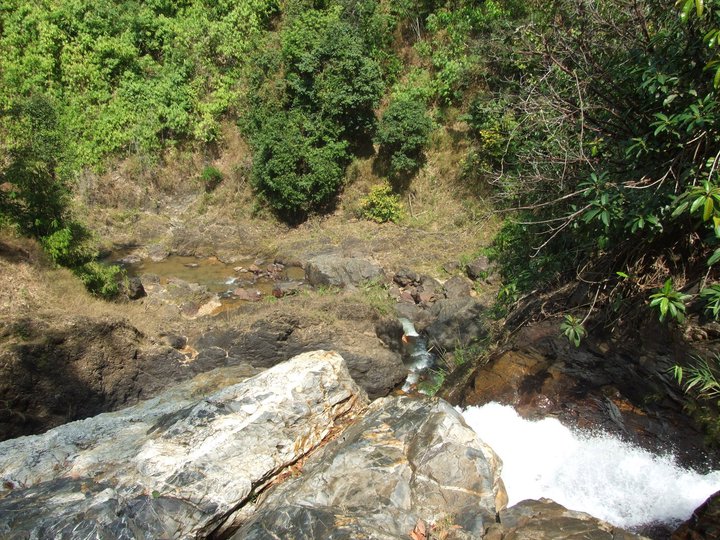 "จากชั้นแรกเดินมาสักสองร้อยเมตรเจอชั้นที่สองเป็นหน้าผาสูงสักสี่ห้าสิบเมตร หาทางลงไม่เจอ เห็นเขาว่าข้างหน้ายังมีน้ำตกอีกชั้นสูงกว่านี้อีก แต่หาทางไปต่อไม่ได้ถ้าจะลงไปตามน้ำตกต้องเอาเชือกมาด้วย หาทางปีนขึ้นเขาข้างๆก็รกและชันมากดูเวลา ถ้าไปต่ออาจจะกลับถึงหมู่บ้านมืด มาคนเดียวเลยกลับก่อนดีกว่า เอาไว้โอกาสหน้าค่อยมาใหม่"