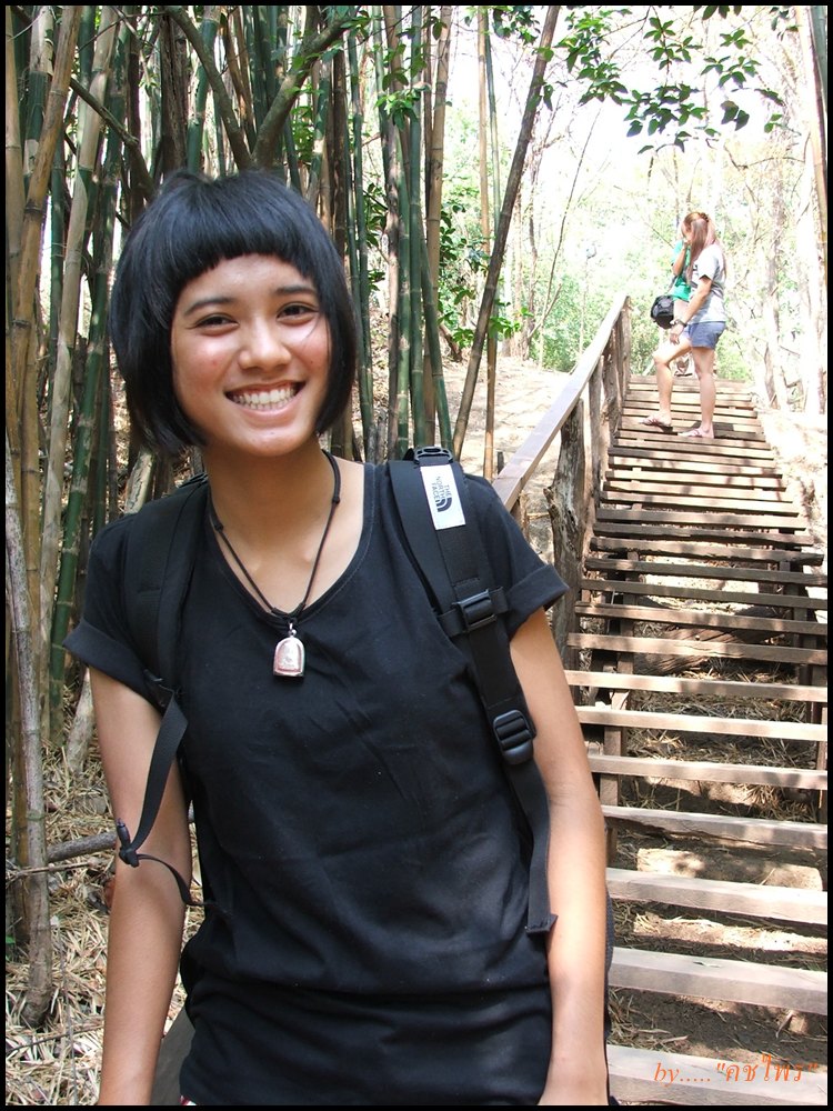 ในภาพด้านหลังน้องสาวผม เป็นบันไดทางเดินลงน้ำตก..