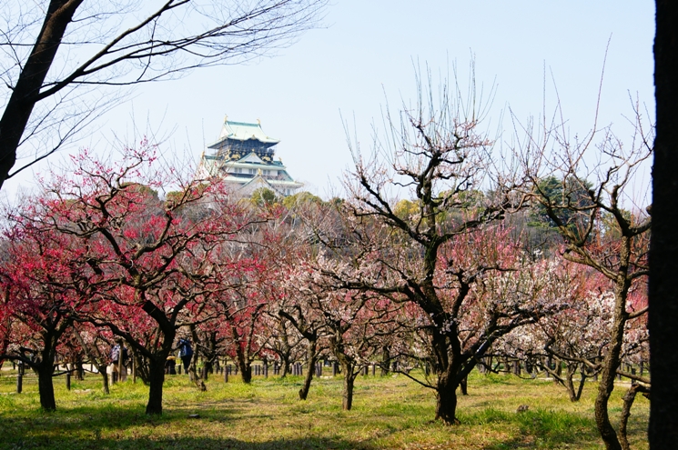 มองเห็นปราสาทโอซาก้าอยู่ด้านบน