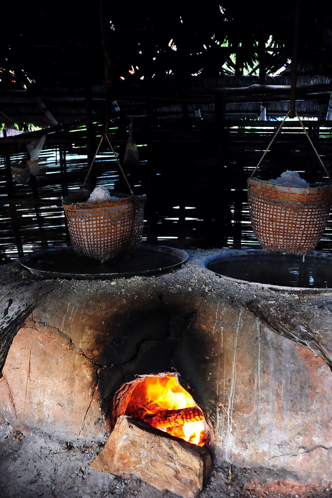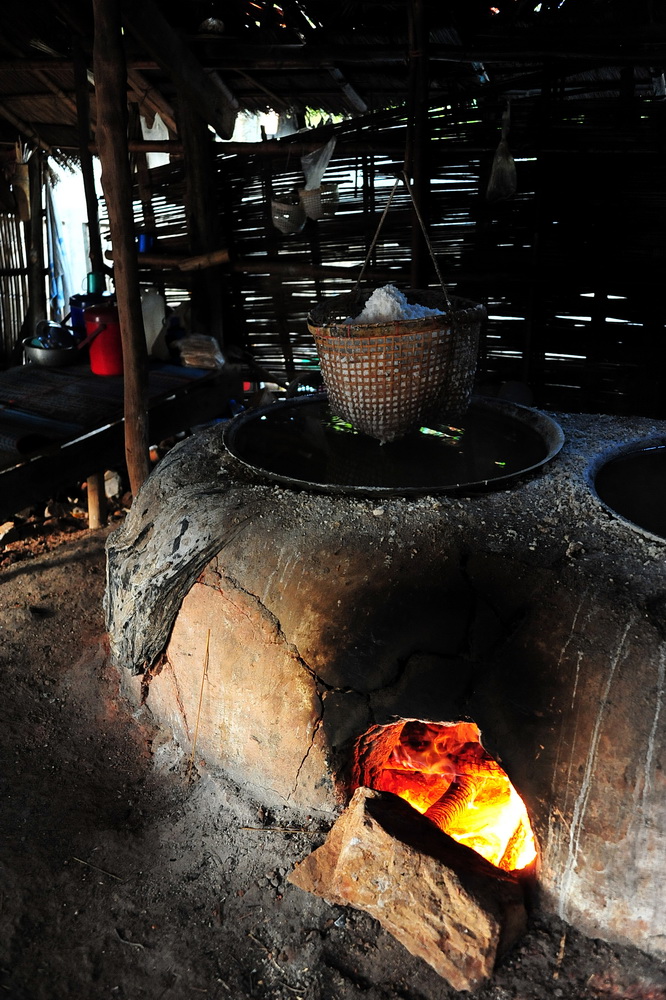 การทำเกลือที่นี่ใช้การต้มแทนการใช้แดดเหมือนภาคกลาง เข้าไปข้างในแล้วอุ่นจนร้อนเลยครับ