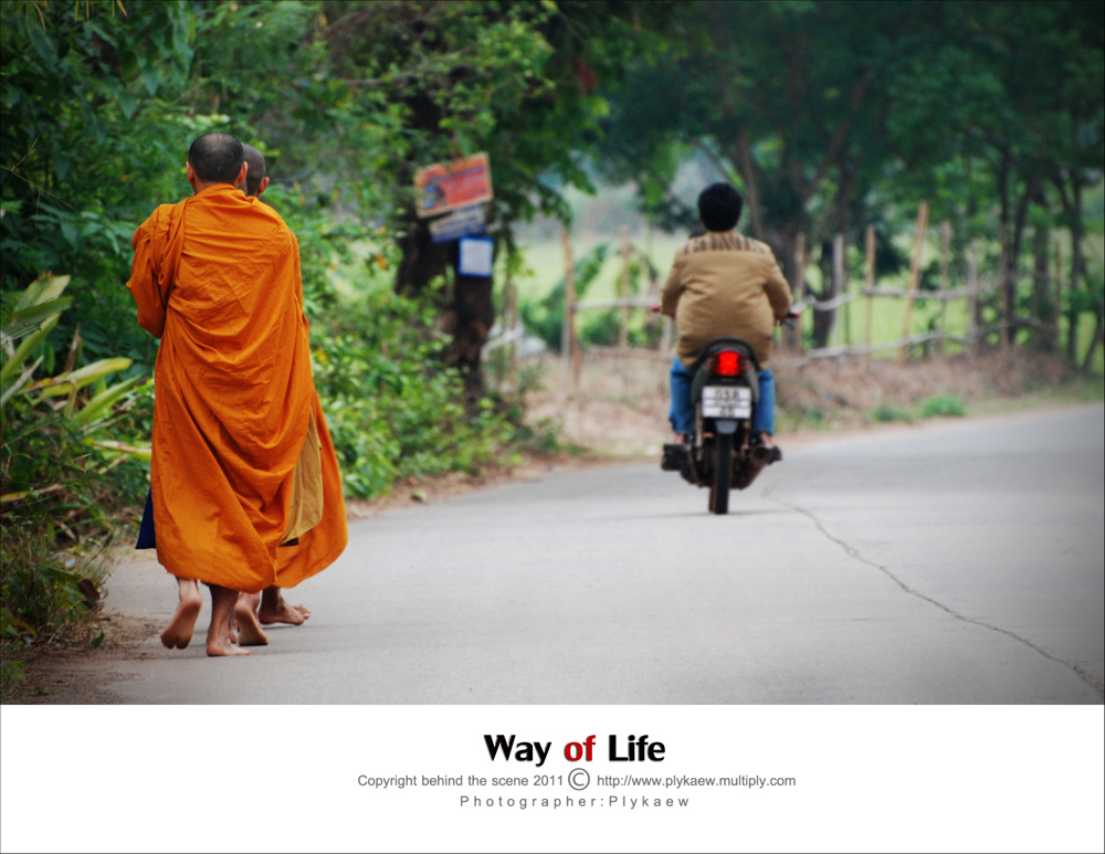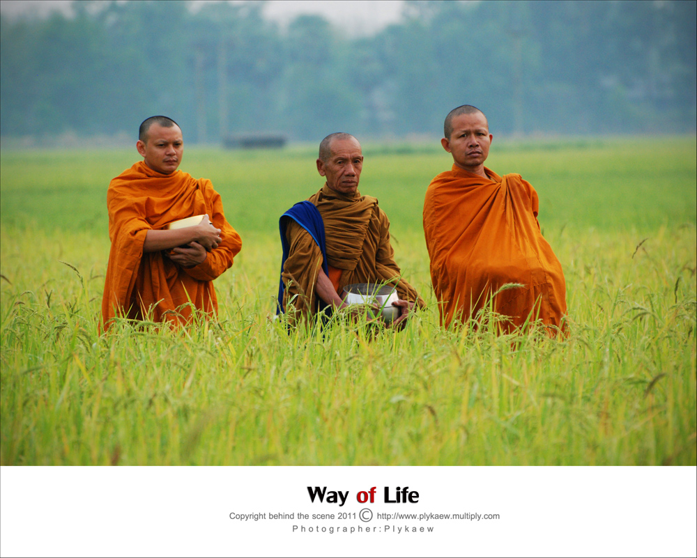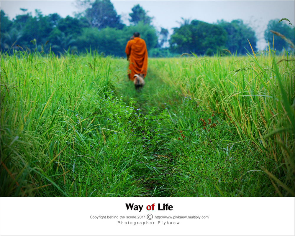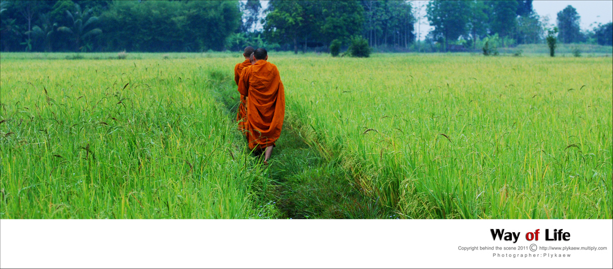 .....บนเส้นทางที่ รายรอบตัว มีทุ่งข้าว .... และในบาตมีข้าว อุ่นๆ ถึงฝ่ามือ