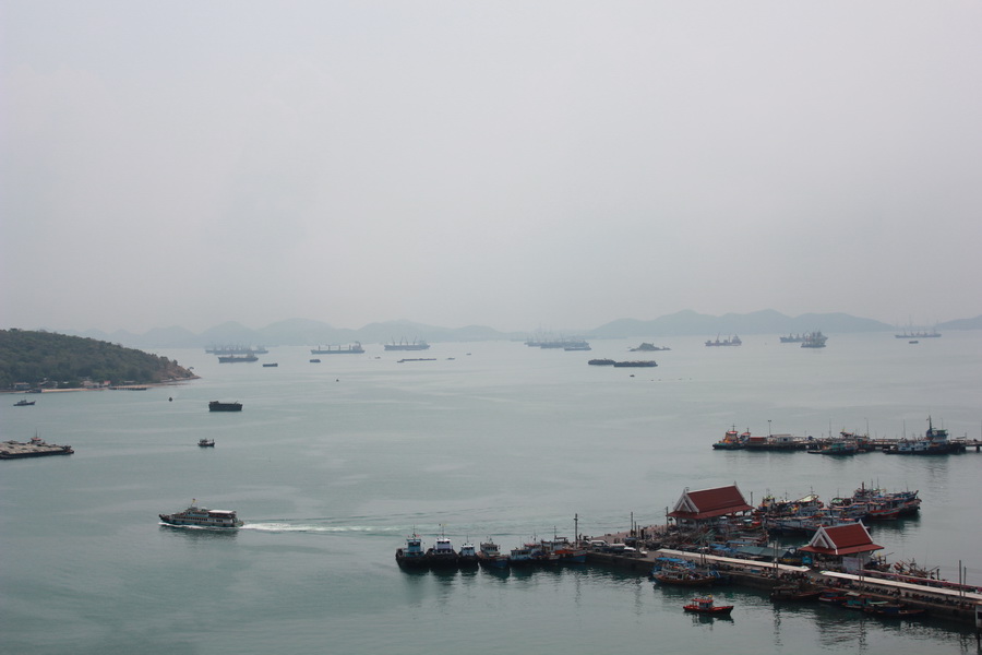 มองจากยอดเขา ลงมาที่ท่าเรือ เที่ยว 11.00จากเกาะสีชัง เข้าไปฝั่ง ศรีราชา
