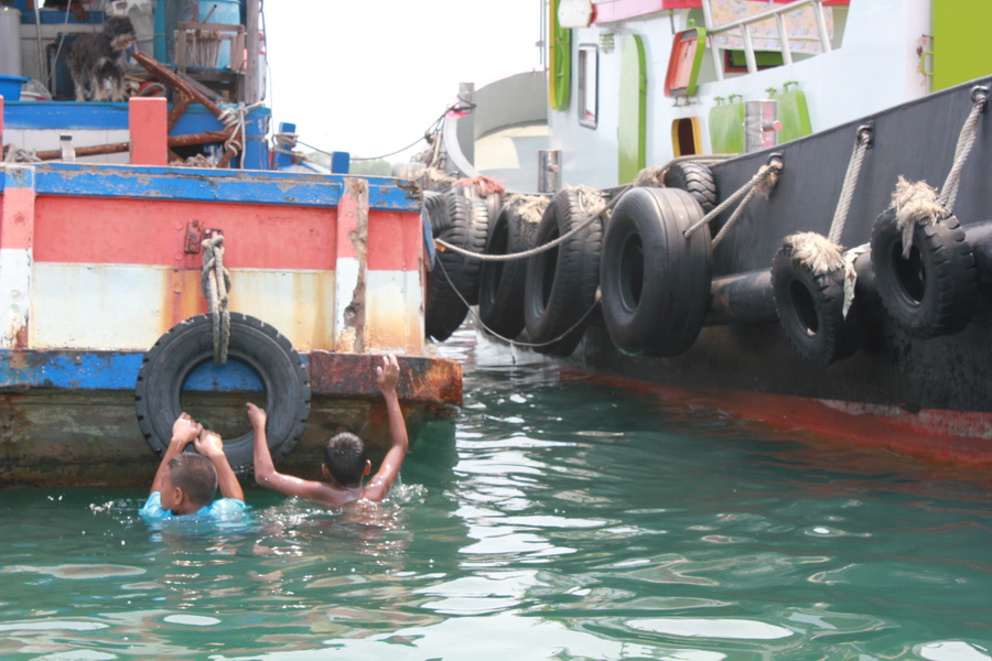 ดูเด็กชาวเล เค้าเล่นน้ำ ลูกทะเล ลึกขนาดท่าเรือ ยังว่ายน้ำได้สบายๆ