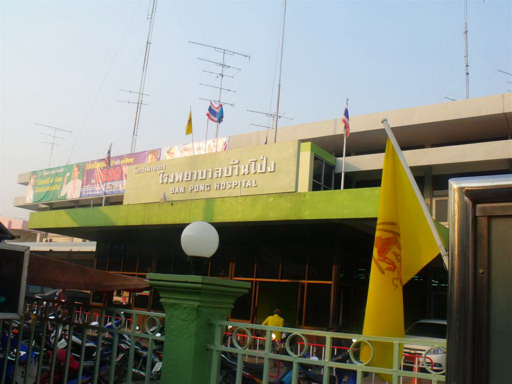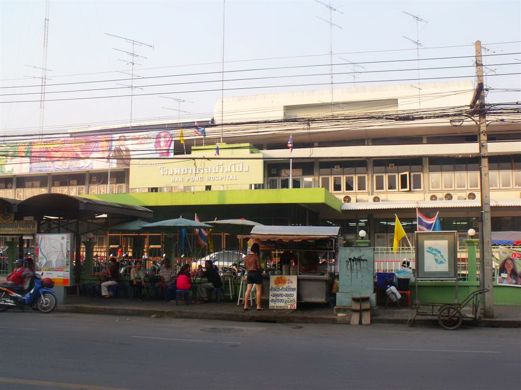 หน้า รพ.บ้านโป่ง กี่ปี กี่ปี ก็ยังเหมือนเดิม ร้านค้าเต็มไปหมด