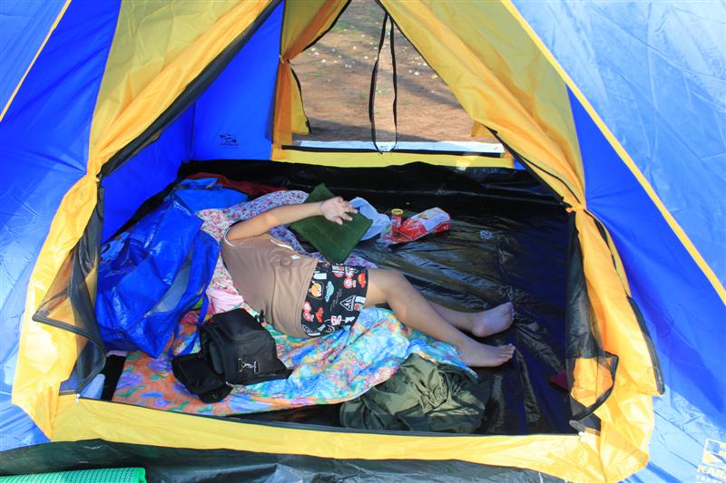 หลังจากกางเต้นท์เสร็จ เจ้าอ้วนของเราก็เริ่มหิว เริ่มแหวกว่ายหาของกินที่เตรียมมาเพื่อสนองตันหาของพยาธิ